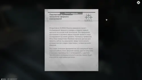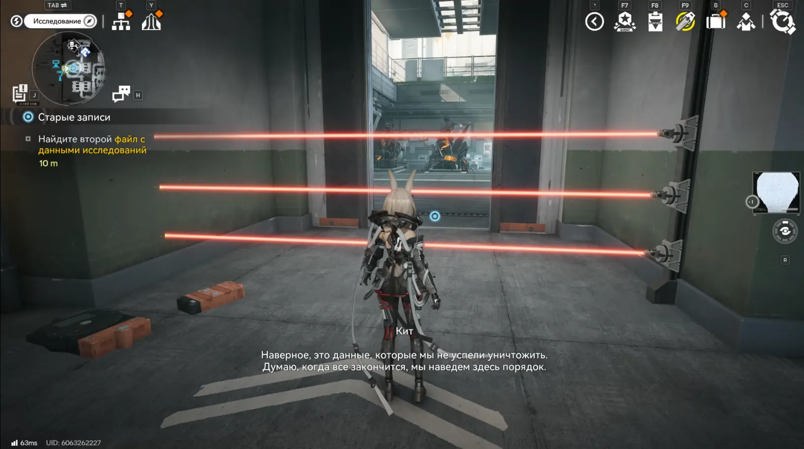 Направляйтесь от стола направо по коридору с лазерной решеткой. Быстро забегите в комнату слева, чтобы не попасть под лучи. Внутри помещения на столе находится последний файл с данными исследований. Взаимодействуйте с ним и прочитайте записи, чтобы завершить сбор информации.