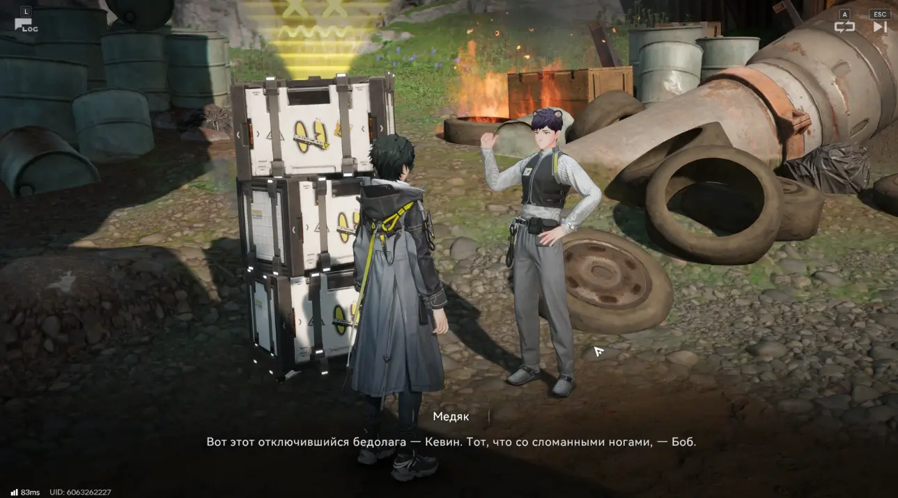 В диалоге он рассказывает о роботах, которые вышли из строя, и просит помощи в ремонте одного из них. Речь идет о роботе по имени Кевин. После завершения разговора задание обновляется, открывая доступ к следующему этапу.