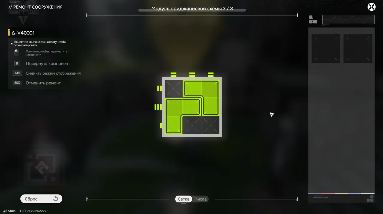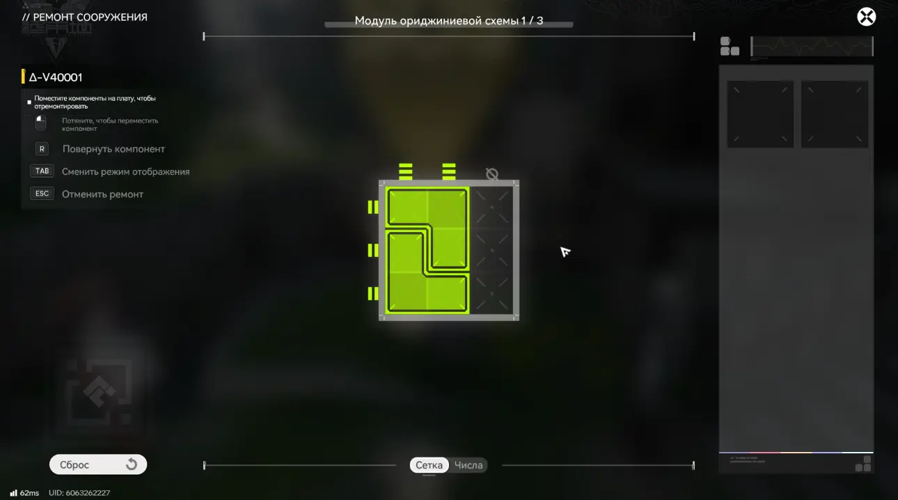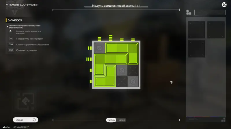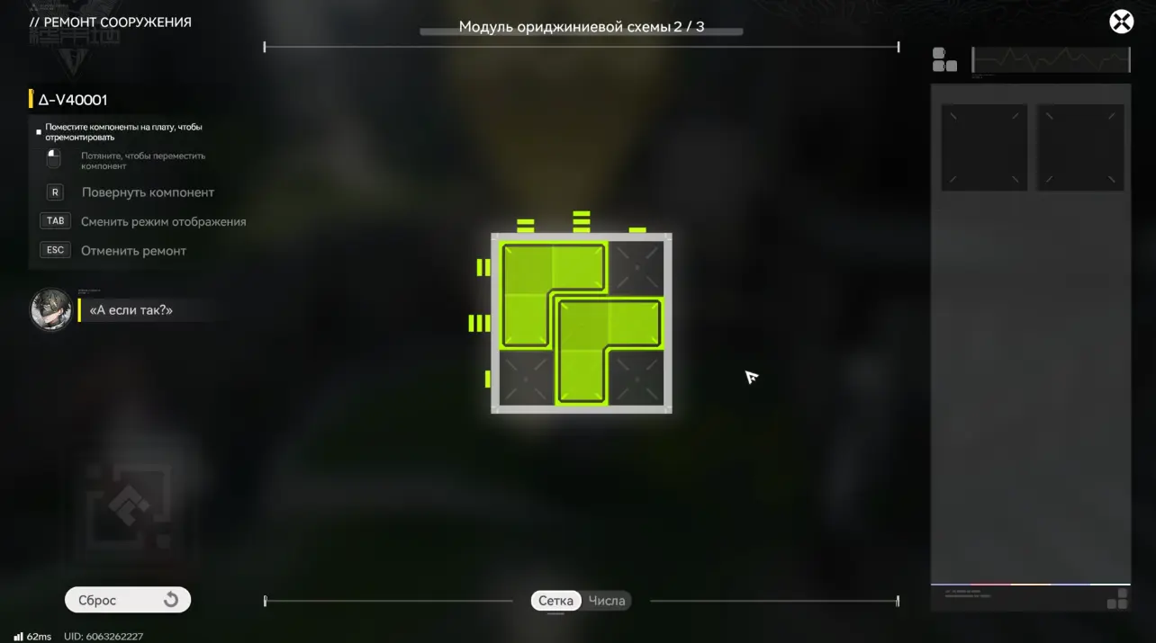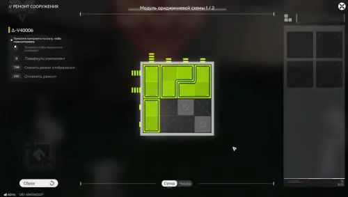 Для восстановления бота необходимо взаимодействовать с ним, нажав «Ремонт» и решить головоломку с модулем ориджиниевой схемы, разместив элементы в правильном положении.