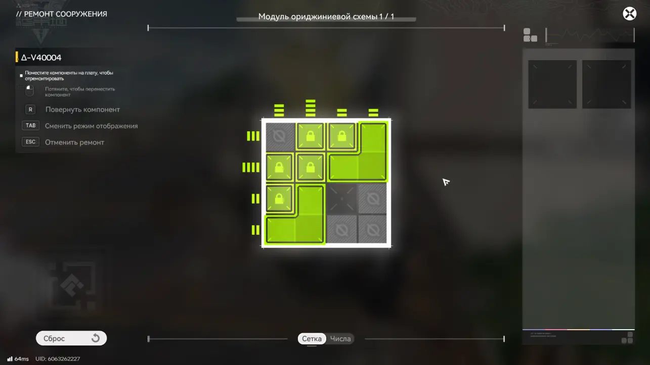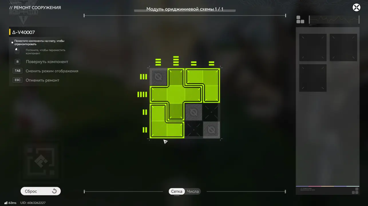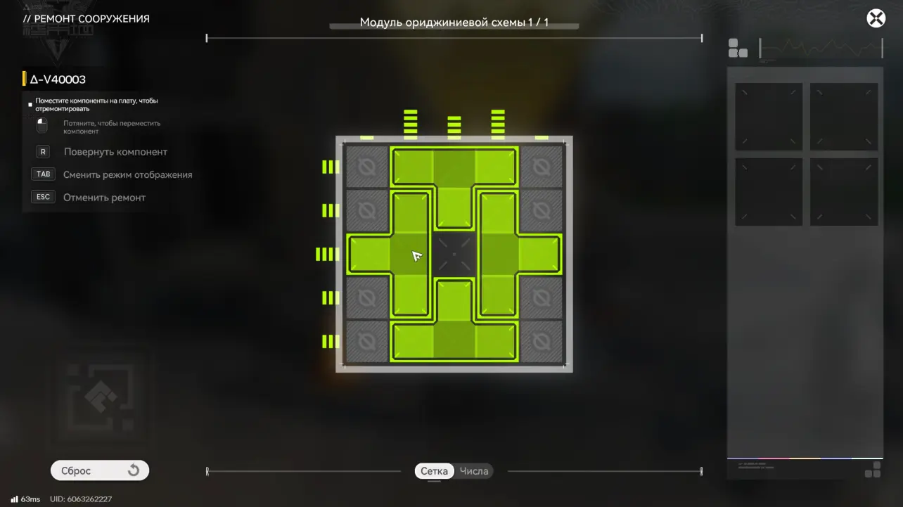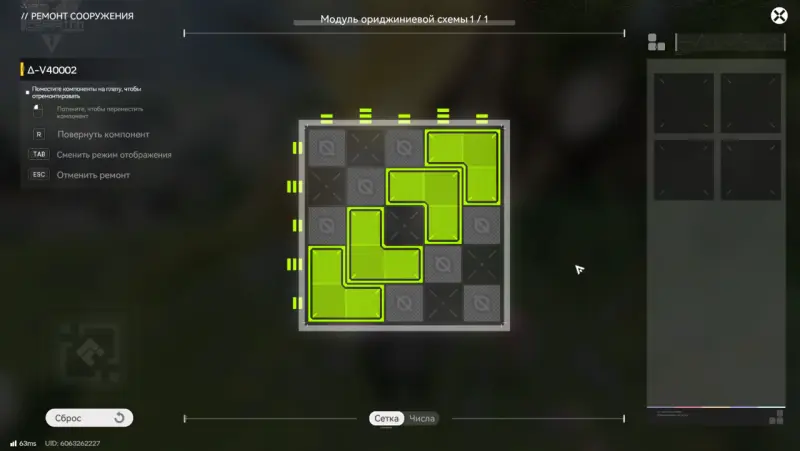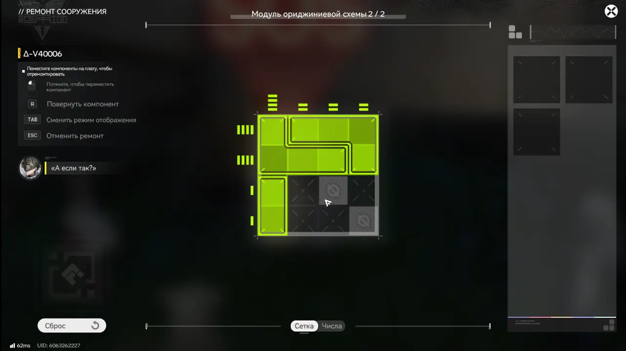 Для восстановления бота необходимо взаимодействовать с ним, нажав «Ремонт» и решить головоломку с модулем ориджиниевой схемы, разместив элементы в правильном положении.