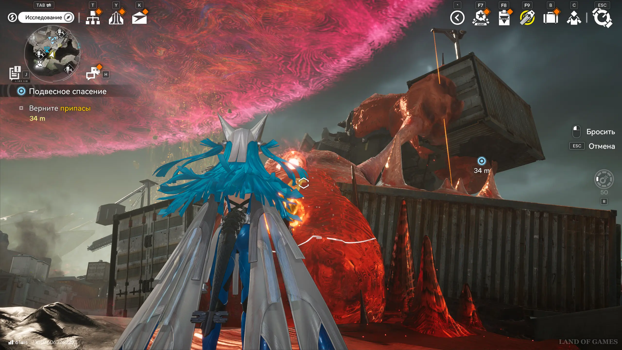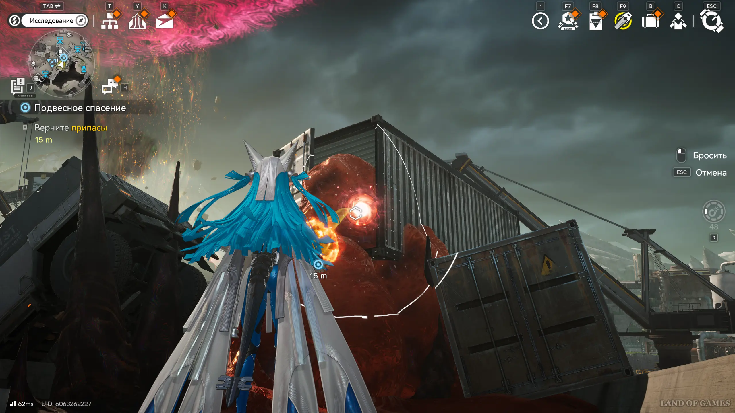 Итак, поднимитесь наверх и киньте бомбу прямо в красную сферу. Затем пройдите вперед и воспользуйтесь тросом, чтобы подняться еще выше. Чуть дальше вы увидите нужный вам контейнер, который тоже окажется покрытым мором. Киньте в его красное ядро еще одну взрывчатку. Затем воспользуйтесь трамплином и запрыгните в контейнер. Внутри вы обнаружите сундук и нужные вам припасы.