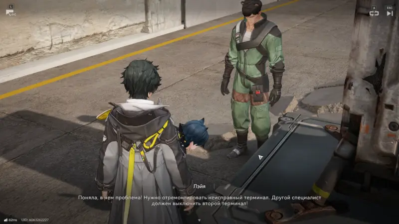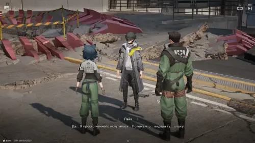 Следуя по маршруту доберитесь до зоны аварии. Здесь вас встретит Лайкор, с которым нужно поговорить. В ходе диалога выяснится, что терминал неисправен и для его починки вас попросят выключить второй терминал.