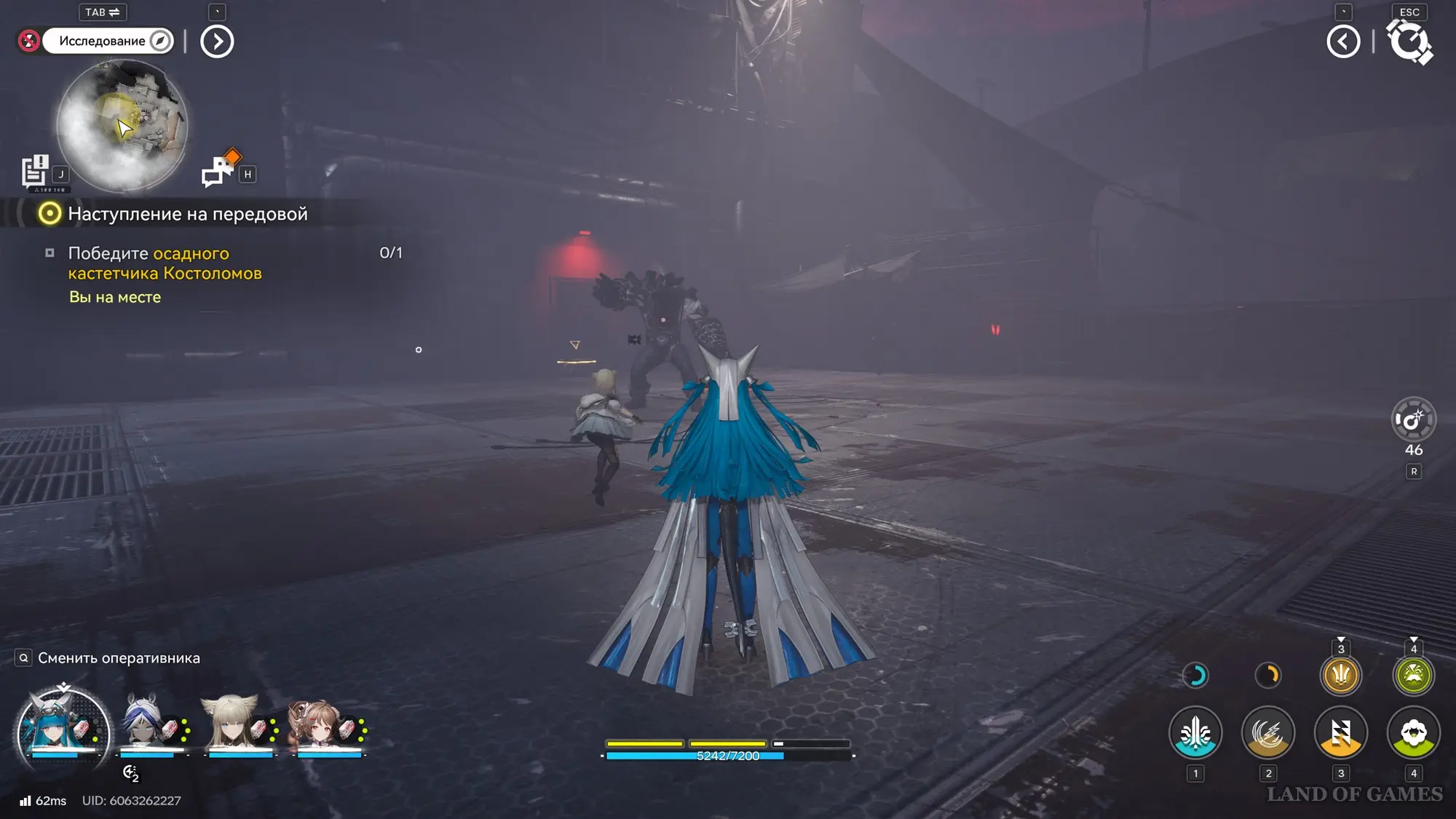 Посмотрите короткий ролик и расправьтесь с группой крушителей. Пройдите через небольшой туннель и выберитесь на поверхность, где будет стоять сильный туман. Идите прямо, а потом поверните налево и продолжайте следовать за маркером, уничтожая по пути землекрушителей. Поднимитесь наверх, и вы столкнетесь здесь с мини-боссом.