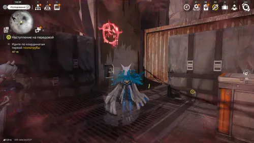 Начните двигаться вперед по дороге, следуя за квестовым маркером. Драться с противниками по пути при этом необязательно. Вскоре вы доберетесь до края разрушенного шоссе. Спрыгните вниз и активируйте ТП. Затем пройдите через дымку, чтобы увидеть рисунки на стене. На контейнере при этом будет нарисован круговой знак – потяните за рычаг, над которым нарисован тот же символ (он расположен посередине).