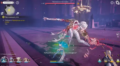 Сражение с боссом будет состоять из двух фаз. На первой из них вам нужно будет просто уничтожить 4 отростка, которые находятся по углам арены. Остерегайтесь их атак и снарядов, вовремя выбегая за пределы круга и выполнения уклонения. Когда все 4 щупальца будут уничтожены, вы увидите появление красного ядра – подбегите к нему и начните бить по сфере своими самыми мощными атаками, дабы снизить здоровье врага до нуля.