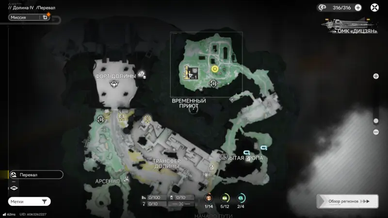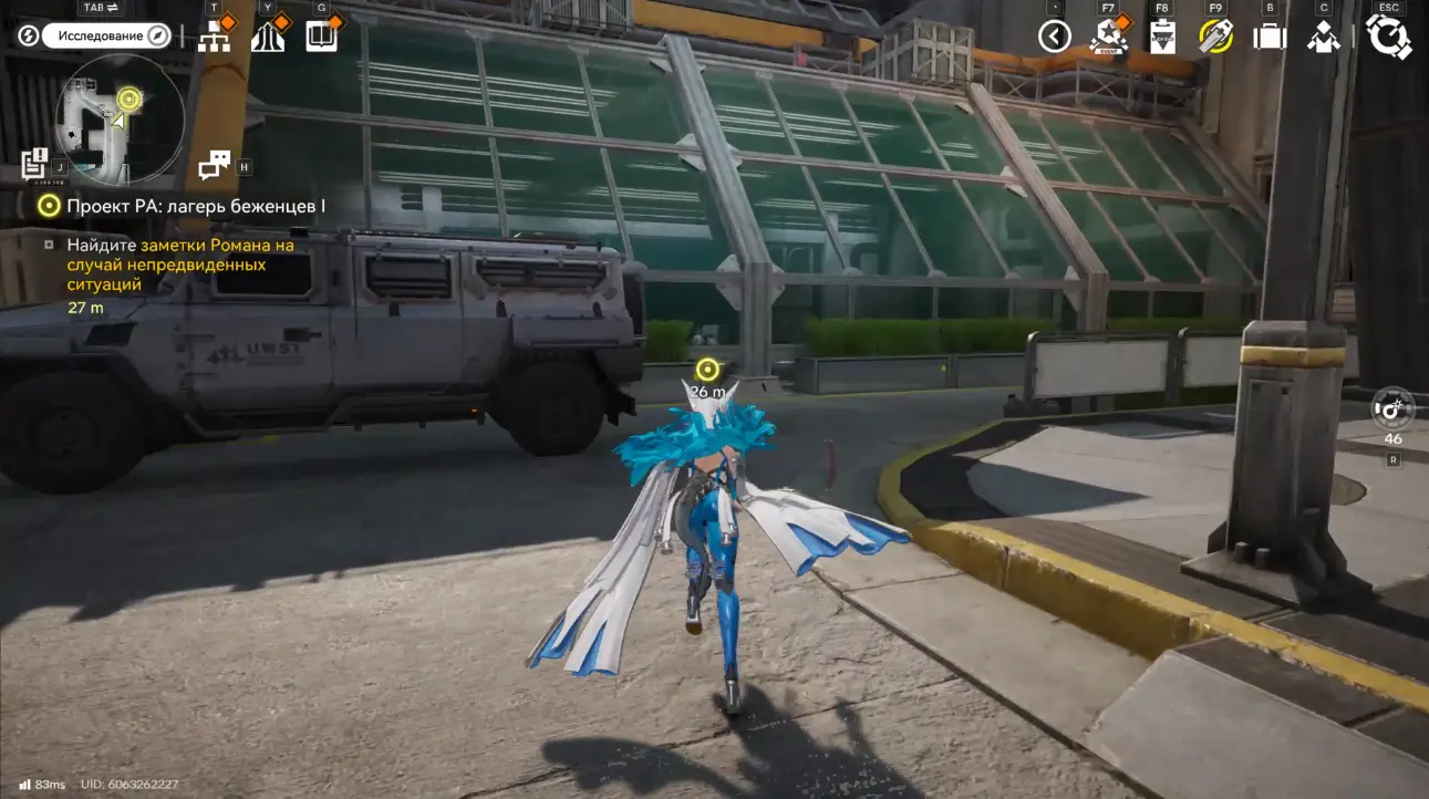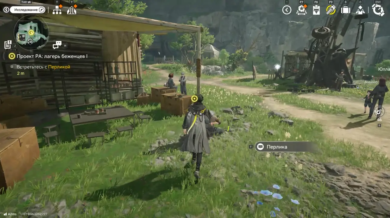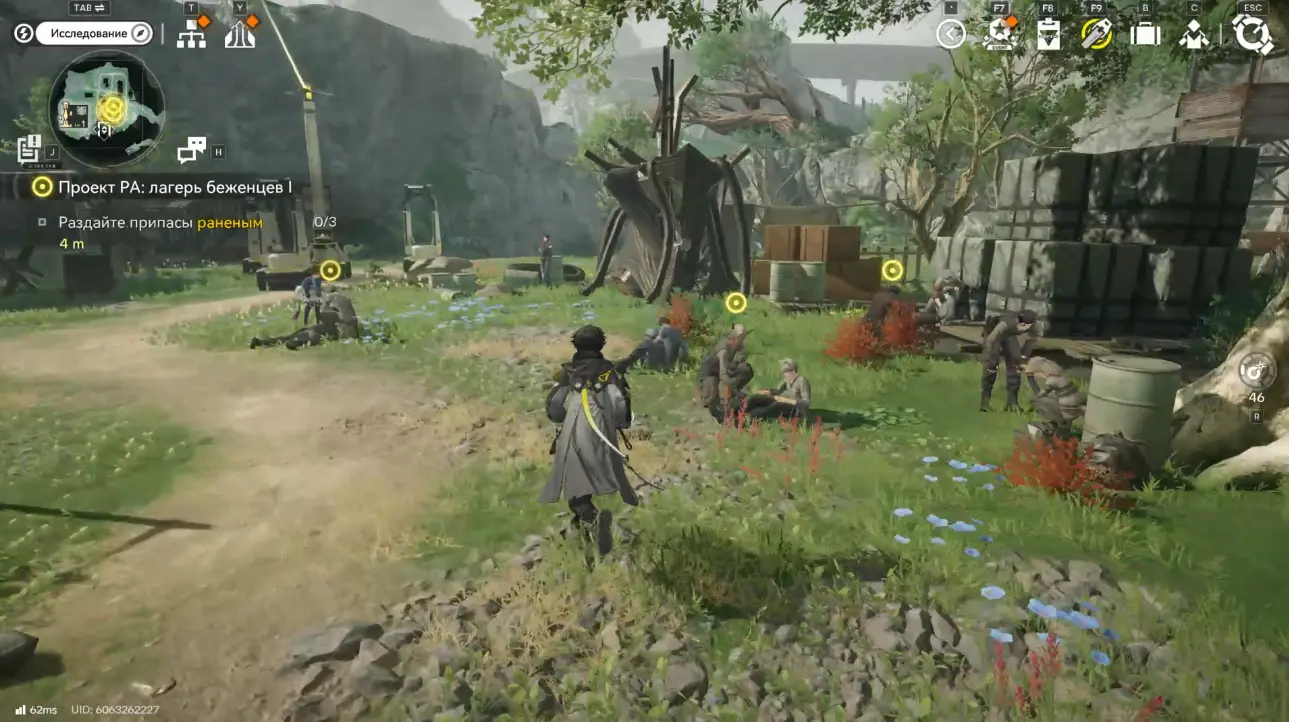Чтобы получить доступ к заданию Проект РА: лагерь беженцев 1, необходимо завершить основную миссию Строительство аванпоста из цепочки Истощенные земли. После этого квест станет доступен как исследовательская миссия в Долине IV. Прохождение начинается с проверки сообщения: вам приходит просьба о помощи. После закрытия экрана чата сразу появляется активная цель – отправиться в лагерь беженцев.