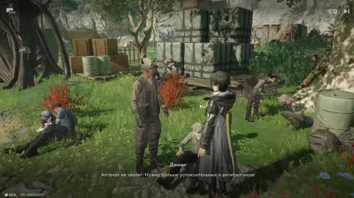 По прибытии подойдите к девочке Джинни, она сообщит, что в лагере есть раненые, которым срочно нужна помощь.