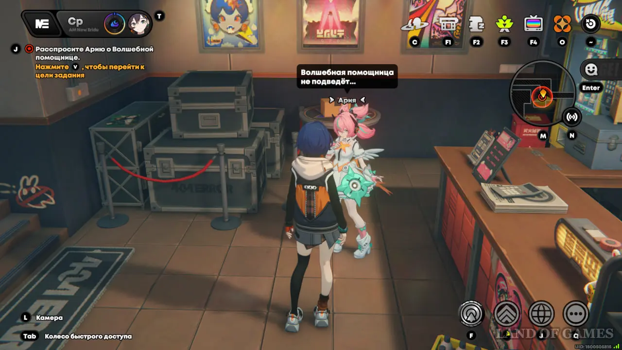 После репетиции выслушайте Сесилию — женщина обеспокоена «Волшебной помощницей», с которой часто советуется Ария. Обсудите эту тему с ее напарницами. Затем поднимитесь на этаж выше и поговорите с самой Арией.