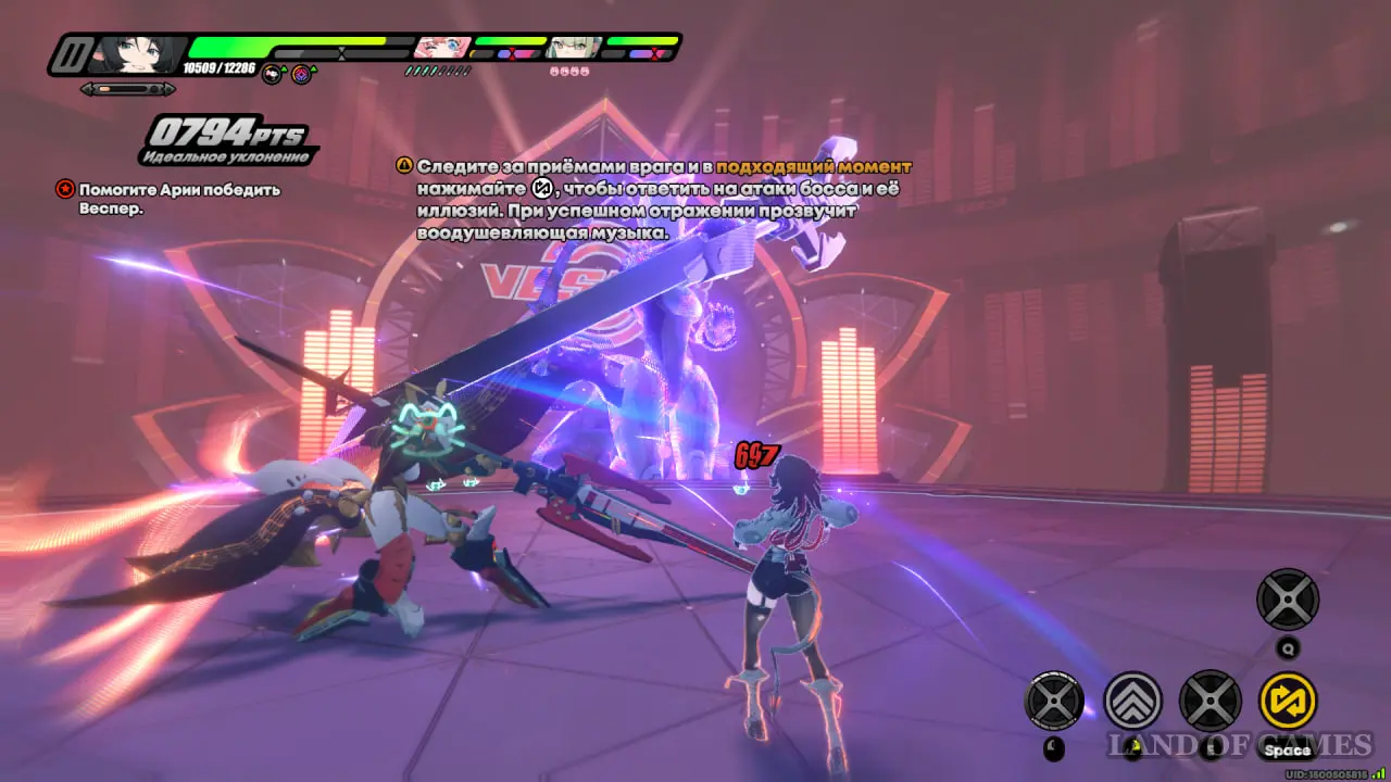 Вы получите управление над командой из Арии, Джейн и Санны. Стиль сражения Веспер немного схож с Арией: вам также придется использовать идеальные уклонения, чтобы избежать захвата. Кроме того, когда появится большая проекция босса, следите за ее движениями и используйте быструю помощь, чтобы уклониться от копья. Проекция также будет периодически наносить удары перед собой.