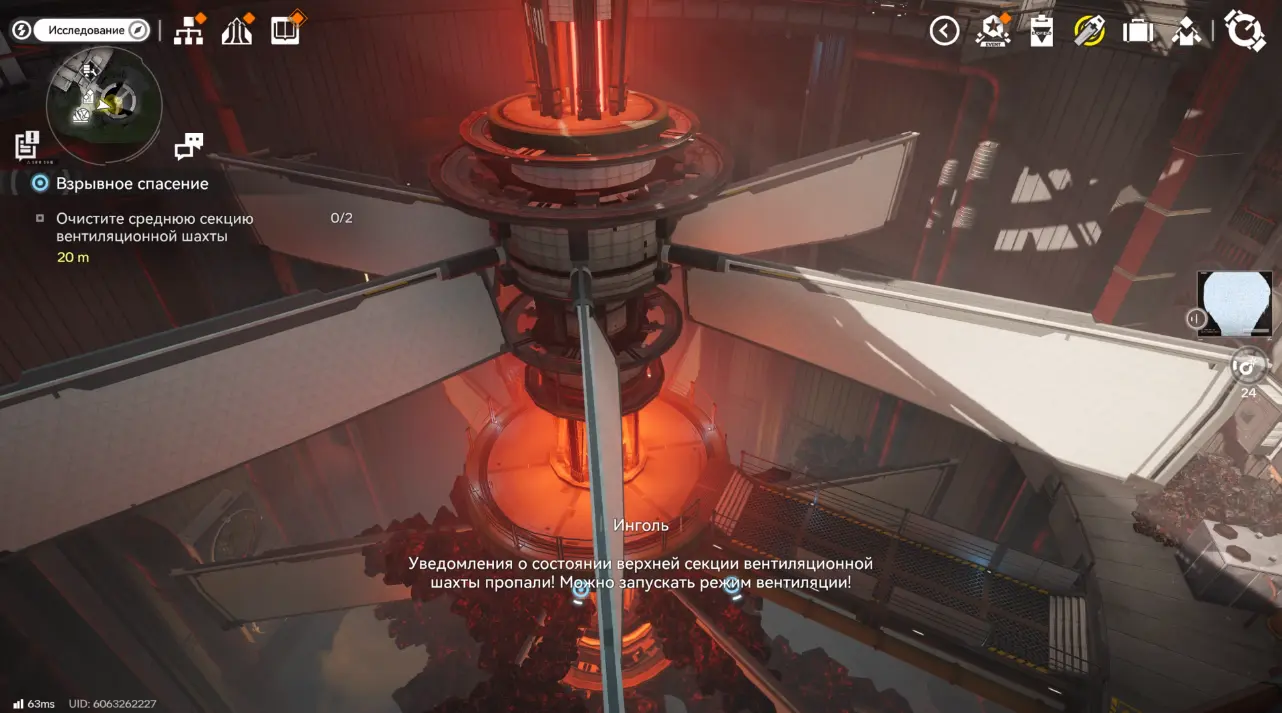 Поговорите с Инголь в диспетчерской. Она объяснит, что вентиляционные шахты забиты гелем, а реактор требует вмешательства. Следующая цель – найти альтернативный путь к вентиляционной шахте, поскольку главный вход заблокирован.