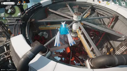 Бросайте заряды в центр застывшего геля, это гарантирует полное разрушение структуры. После уничтожения всех наростов лазерная решетка рядом отключится, и вы сможете спуститься вниз по тросу.