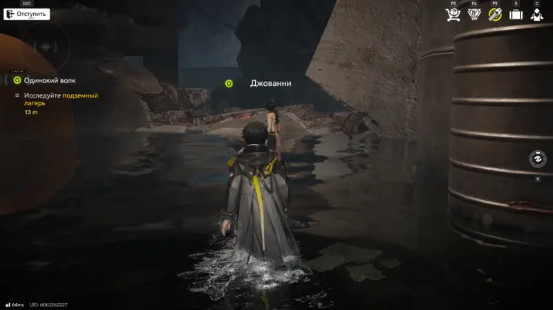 След приведет вас в местность Лагерь у моста к двухэтажному железному строению. Поднимитесь по лестнице наверх к закрытым воротам. Перед ними будет подсвечена область, если вы взаимодействуете с ней, игра оповестит вас о режиме погружения.