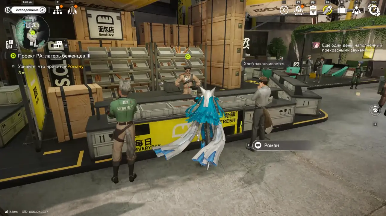 Телепортируйтесь в Общежитие рабочих в Центре. От ТП двигайтесь налево и спуститесь по лестнице, неподалеку находится хлебная лавка Романа.