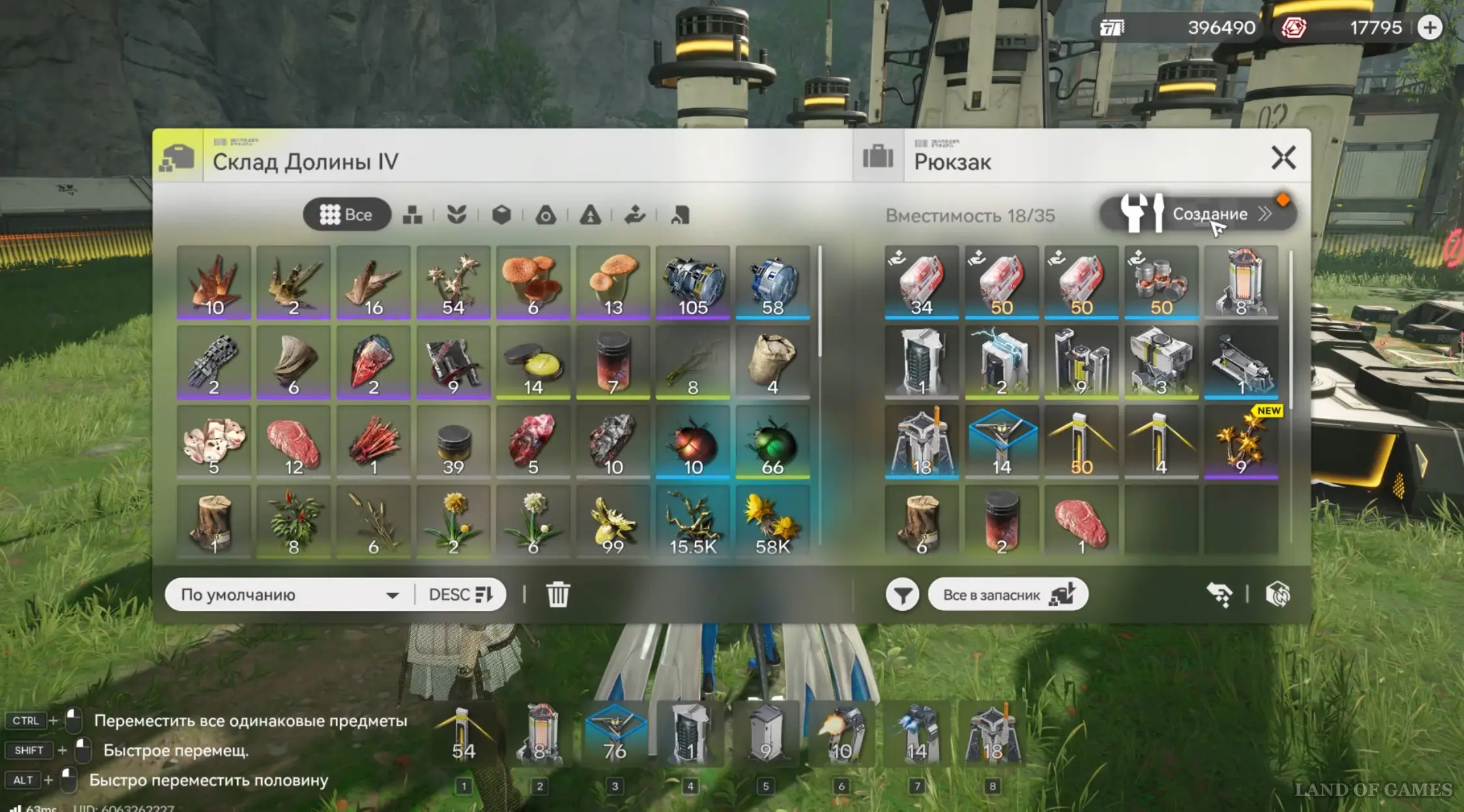 Оба предмета необходимо положить в рюкзак перед сдачей. Для перехода к системе крафта, откройте рюкзак (клавиша В), а потом нажмите на кнопку «Создание» и перейдите на вкладку «Улучшенные ЕиЛ».
