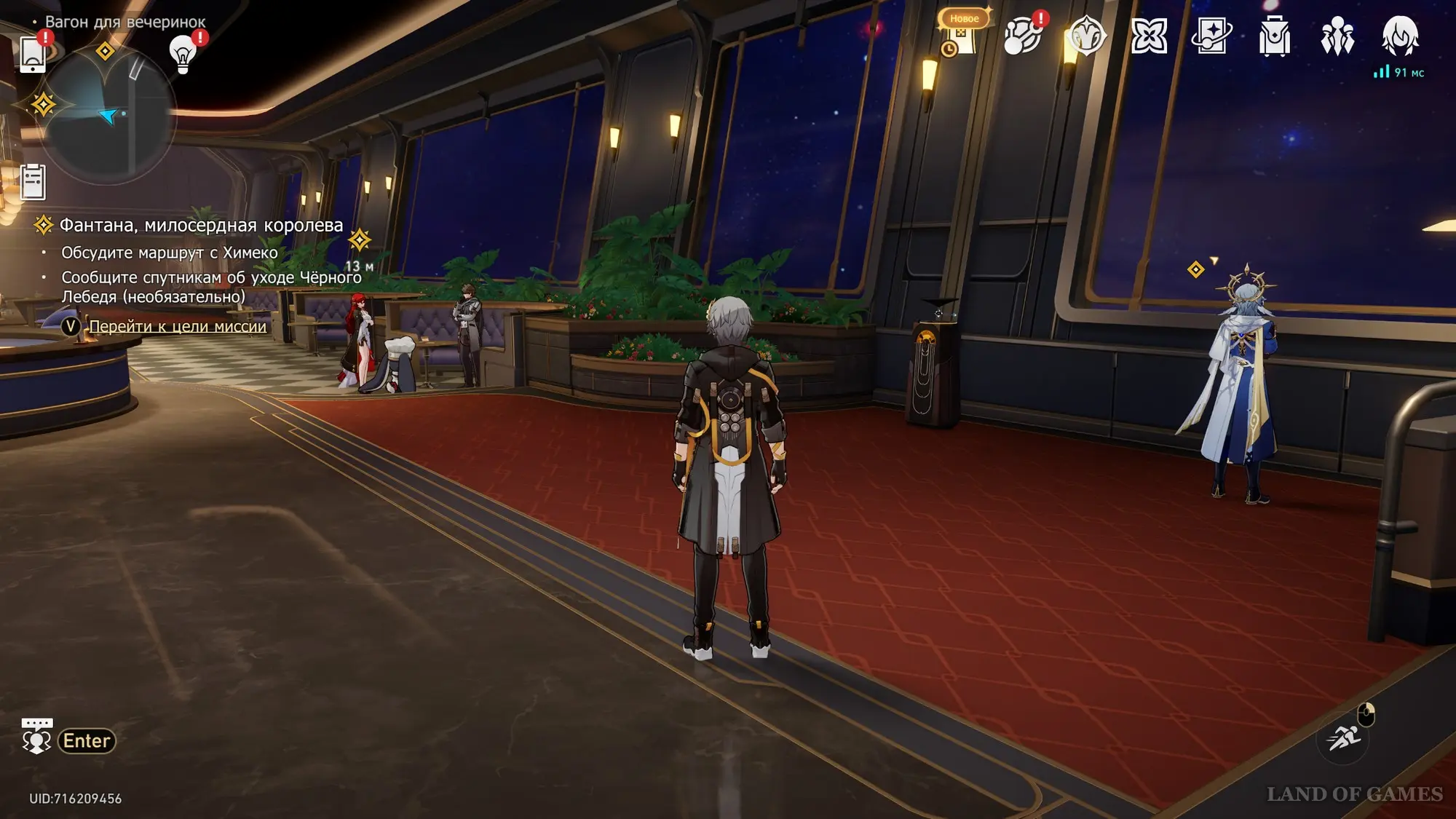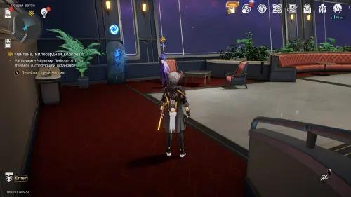 Пройдите в общий вагон и расскажите о разговоре Черному Лебедю, которая покинет Звездный экспресс – можете рассказать об этом друзьям (необязательно; не дает награды) или сразу пообщаться с Химеко. Потом гляньте ролик с отправлением в Двумернию. Приземлившись, поболтайте с Жемчугом.