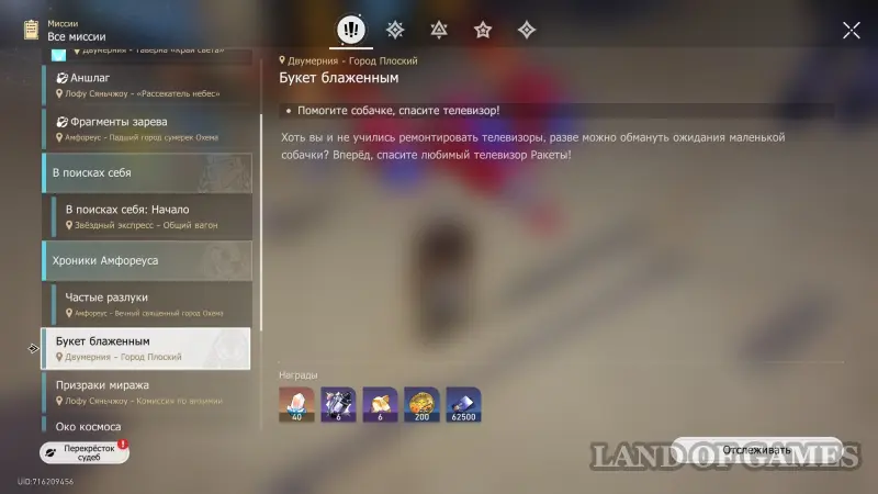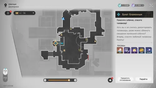 Разобравшись с указанными требованиями, переместитесь к якорю «@Вход» в Городе Плоский, а затем подойдите к фантому собачки, над которым висит восклицательный знак, и взаимодействуйте с ней. Узнав о ситуации, вы решите помочь Ракете спасти его друга из телевизора. В итоге в вашем журнале появится новый квест.