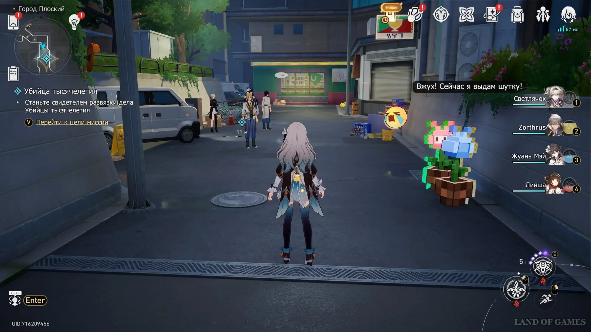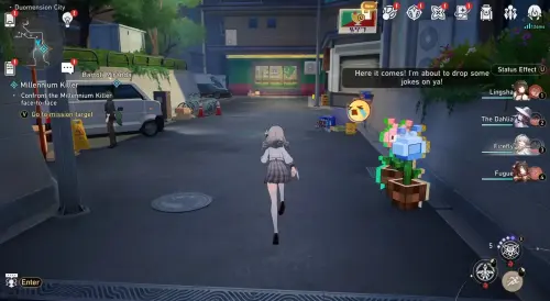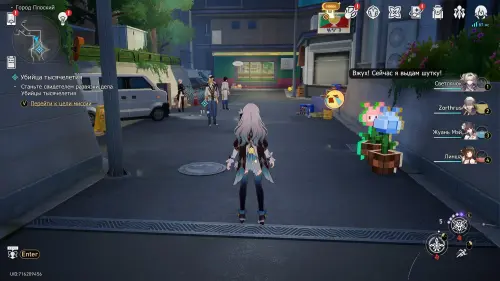 Разобравшись с указанными требованиями, переместитесь к якорю «Переулок гурманов» в Городе Плоский, а затем пройдите направо и под мостом отыщите девушку по имени Скуда, над головой которой висит восклицательный знак. Поболтайте с ней, а потом согласитесь помочь айдолу Джое найти злоумышленников, которые украли ее глаза. В результате у вас стартует новый квест.