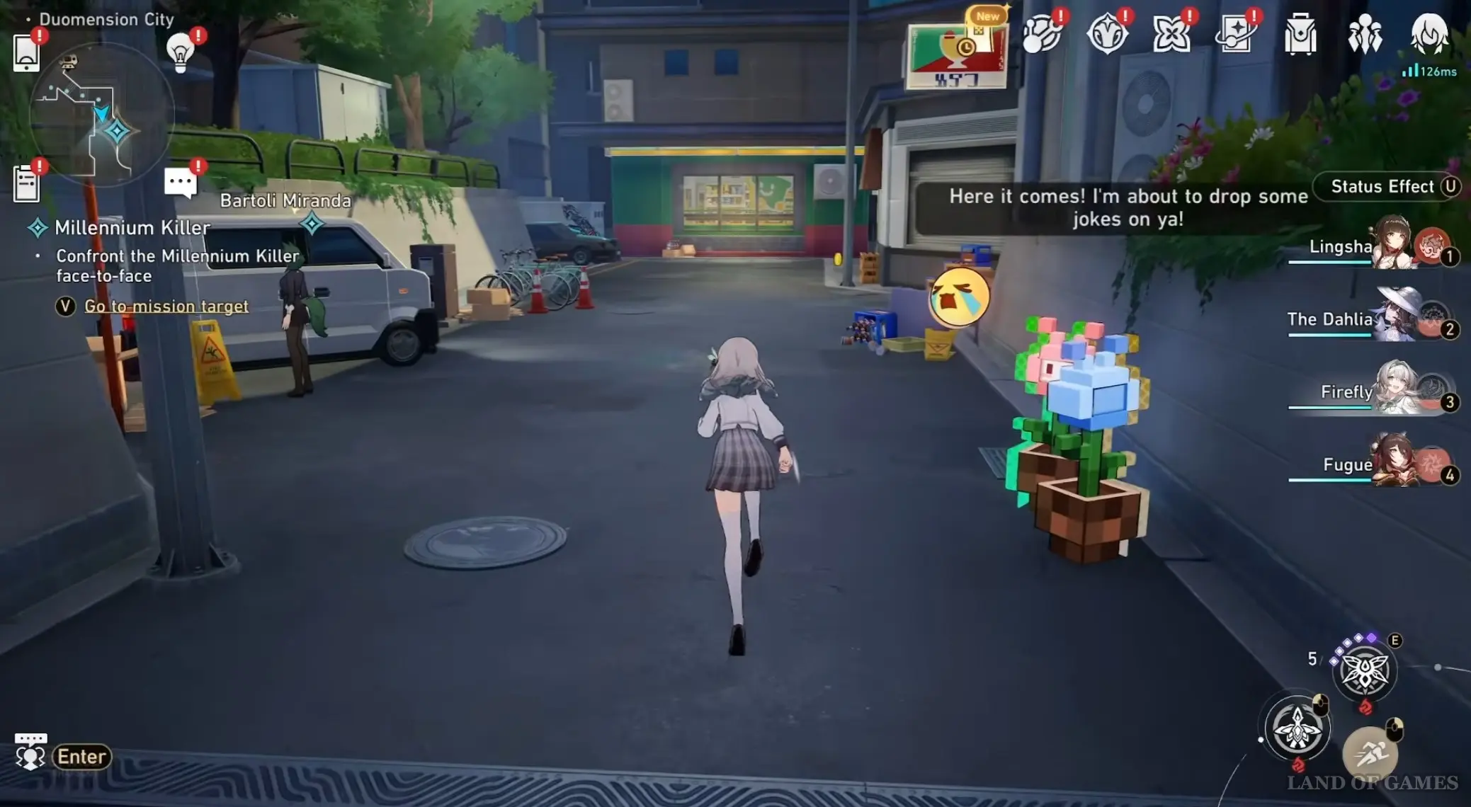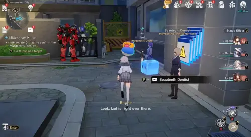 Выберите вариант «Я пойду с Эшвейлом», а потом отправляйтесь в клинику, чтобы допросить Изола. Вы поймете, что он не является убийцей. Переместитесь на «@Площадь развлечений» и встретьтесь с преступником лицом к лицу. Поговорите с Мирандой и узнайте ее мотивы. Можете выбирать любые ответы, так как вас в любом случае ждет битва с боссом.