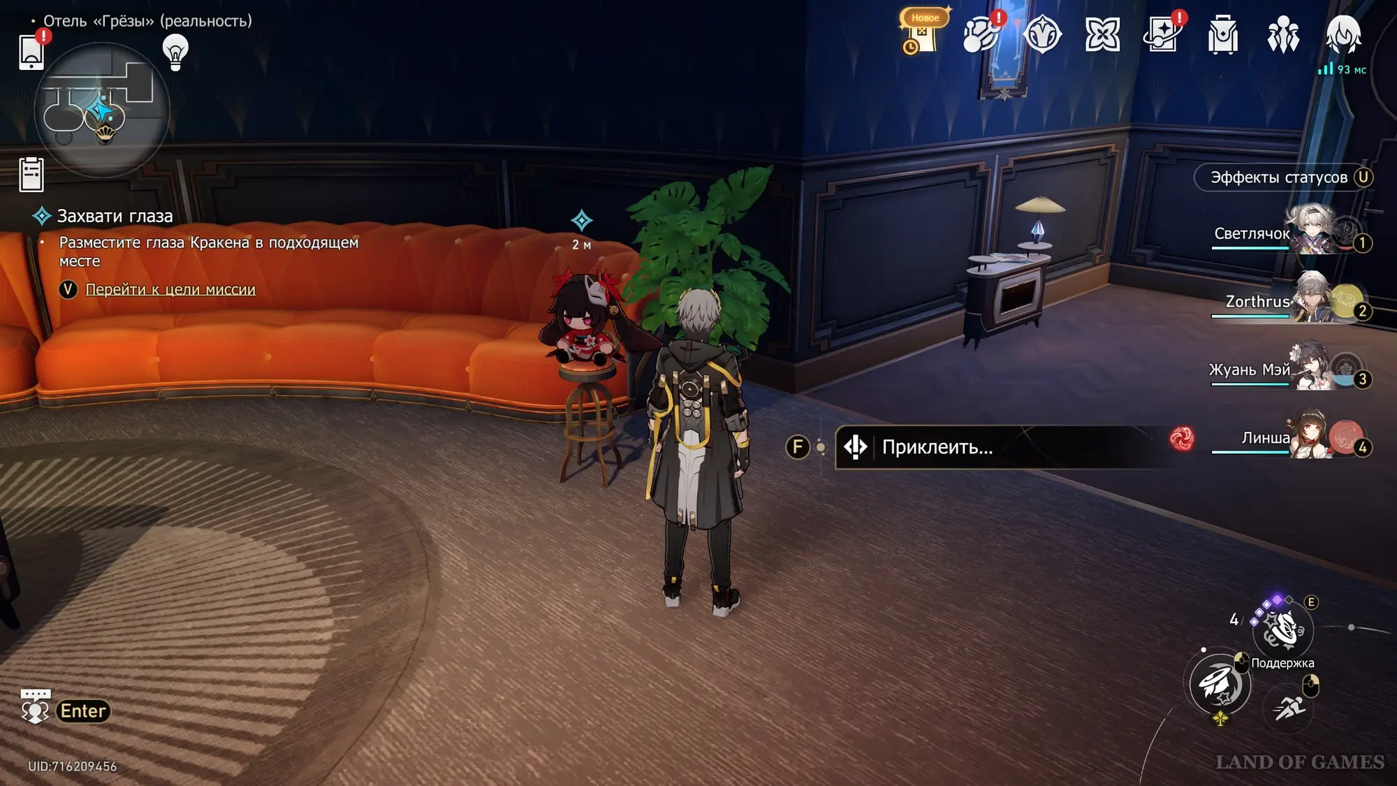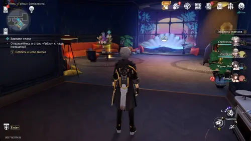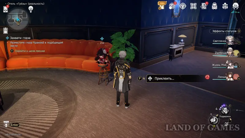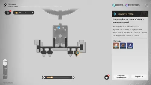 Переместитесь к якорю «VIP-зал» в Отеле «Грезы» (реальность), а затем поднимитесь на второй этаж и войдите в номер в левом коридоре. Подойдите к квестовому маркеру рядом с раковиной и снова поболтайте с Кракеном. Затем приклейте его глаза к кукле Искорки и осмотрите чашу сновидений.