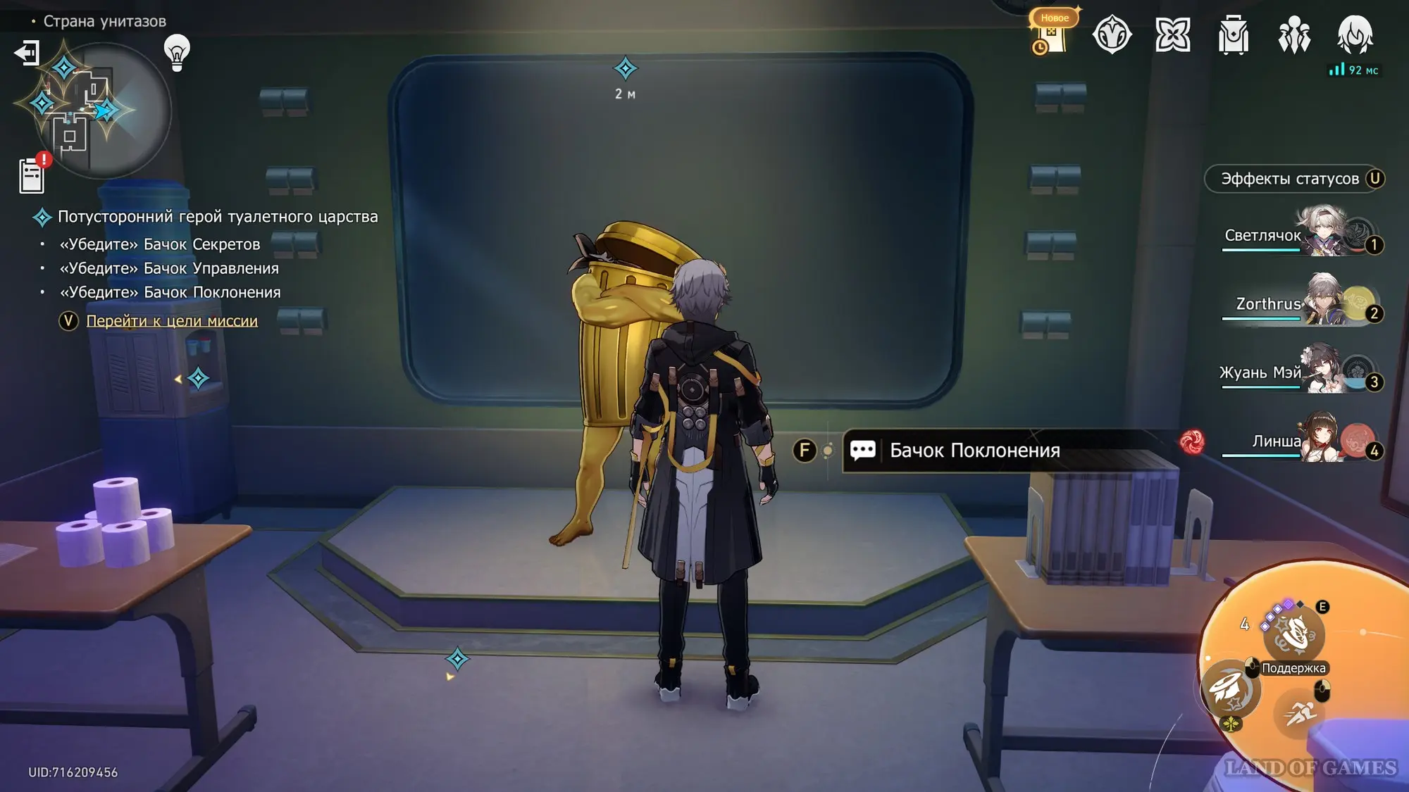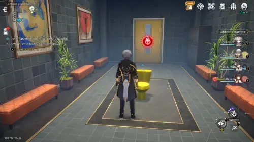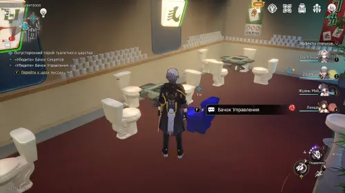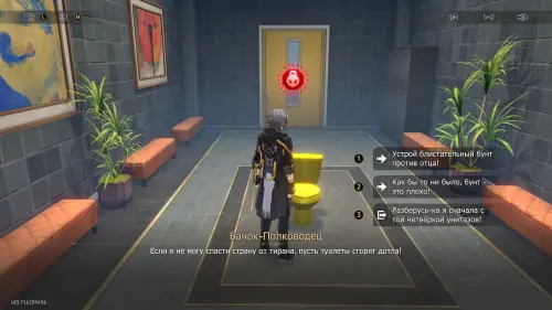 Переместитесь в отмеченную область и подойдите к золотому унитазу. Взаимодействуйте с ним и сядьте на него, а потом поговорите со странным фантазмом. Можете выбирать любые ответы, так как они ни на что не влияют. Согласившись помочь своему необычному собеседнику, вы получите новый квест.