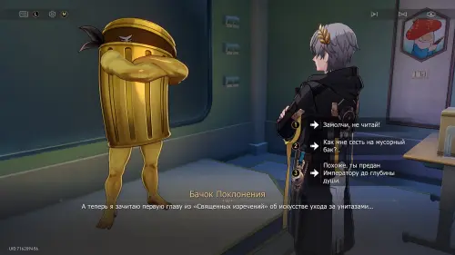Развернитесь от унитаза и пройдите в комнату справа, чтобы найти здесь Бачок Поклонения – поболтайте с ним и выберите любой ответ, так как вы все равно посчитаете его безнадежным, и он исчезнет.