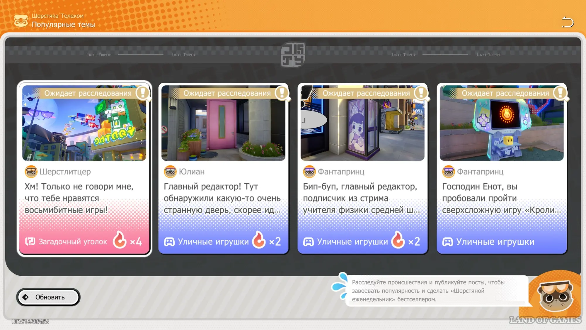 Разобравшись с указанными требованиями, перейдите в Шерстяку Телеком, а затем откройте меню «Популярные темы» и найдите там расследование от Шерстлитцера, касающегося восьмибитных игр. Возьмитесь за него и переместитесь к якорю «Безымянный мост» в Городе Плоский. Пройдите чуть вперед и поговорите со стариком Небожителем.