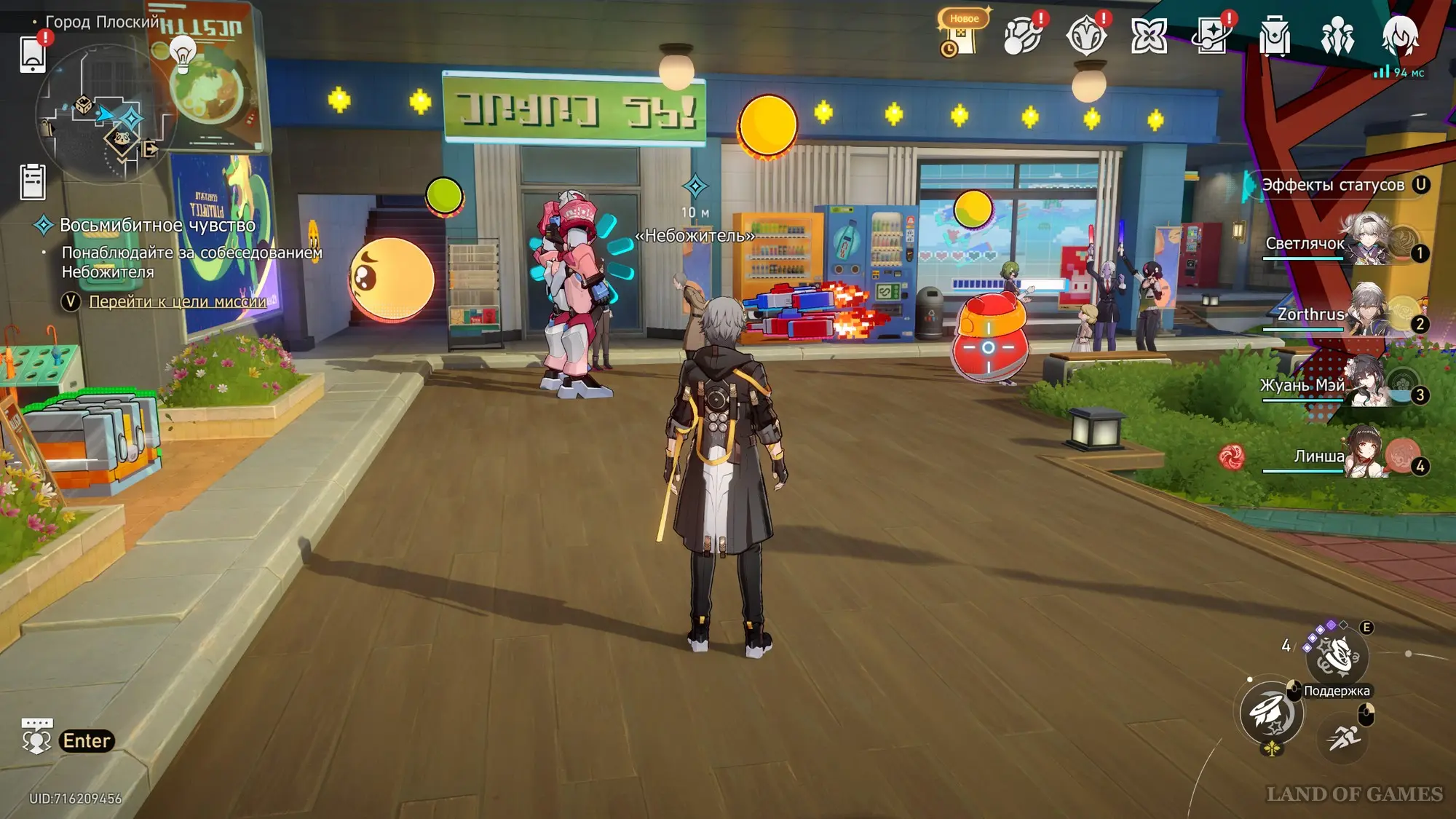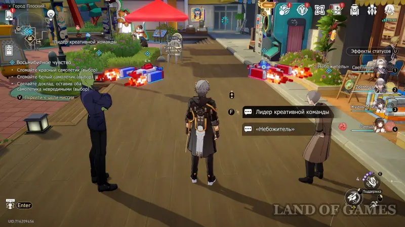 Подойдите к белой игрушке и нажмите кнопку атаки, чтобы разрушить ее. В итоге сотрудник корпорации сильно разозлится, а Небожитель наоборот порадуется. Серебряный Волк увидит эту сценку и создаст собственную игру. На этом задание подойдет к концу, и вы откроете ачивку «Ходящая/Ходящий с Небожителем», за которую дают 5 звездных нефритов.