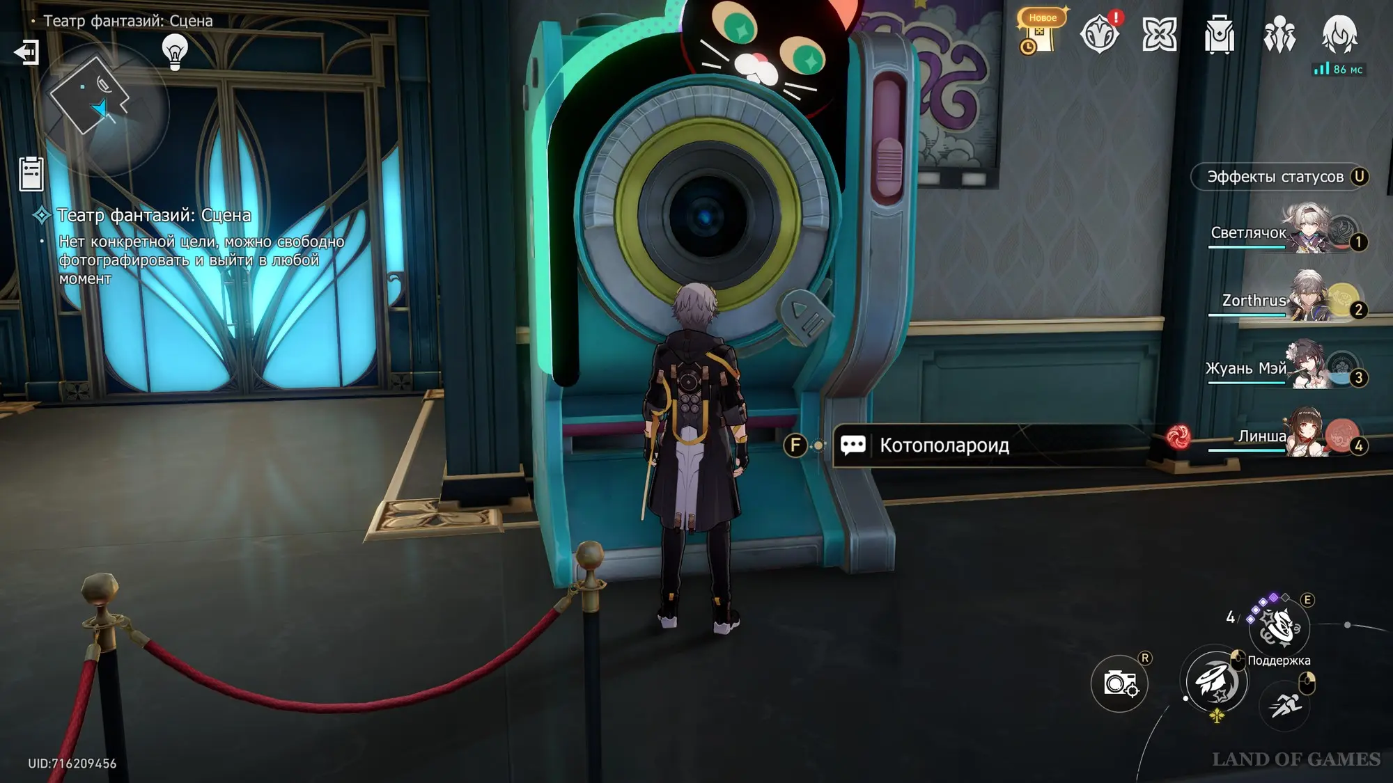 Разобравшись с указанными требованиями, переместитесь к якорю «Площадь перед станцией Потерянных снов» в Городе Плоский, а затем пробегите немного вперед, и на противоположной стороне улицы отыщите съемочный автомат в форме черной кошки. Взаимодействуйте с Котополароидом и выберите ответ «Не терпится начать. Снимай!».