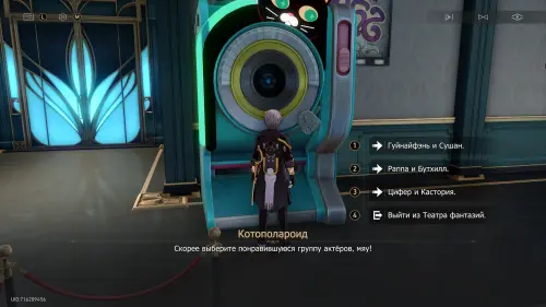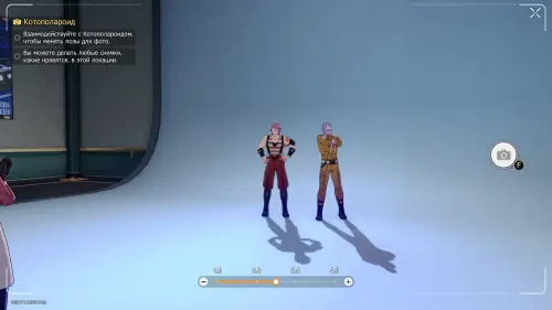 Далее снова поговорите с Котополароидом и можете выбрать любую пару персонажей, чтобы при желании сделать и их фотографии тоже (никаких дополнительных наград за это вы не получите). Если же вы захотите выйти из этой локации, то нажмите кнопку «Esc», а потом на любую из двух надписей выхода.
