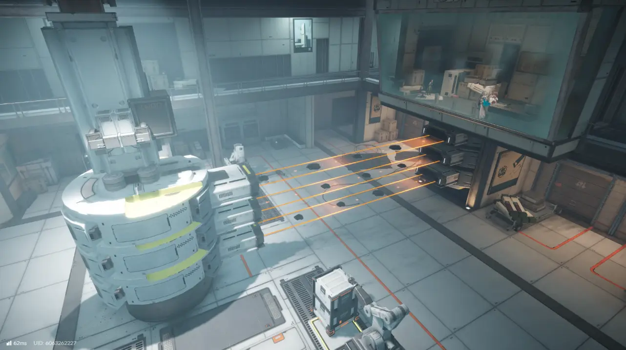 Теперь предстоит решить вторую головоломку с поворотом секций питания. Задача – повернуть три секции так, чтобы все они смотрели в вашу сторону. Когда это произойдет, выдвинется оранжевая конвейерная лента, и система активируется.