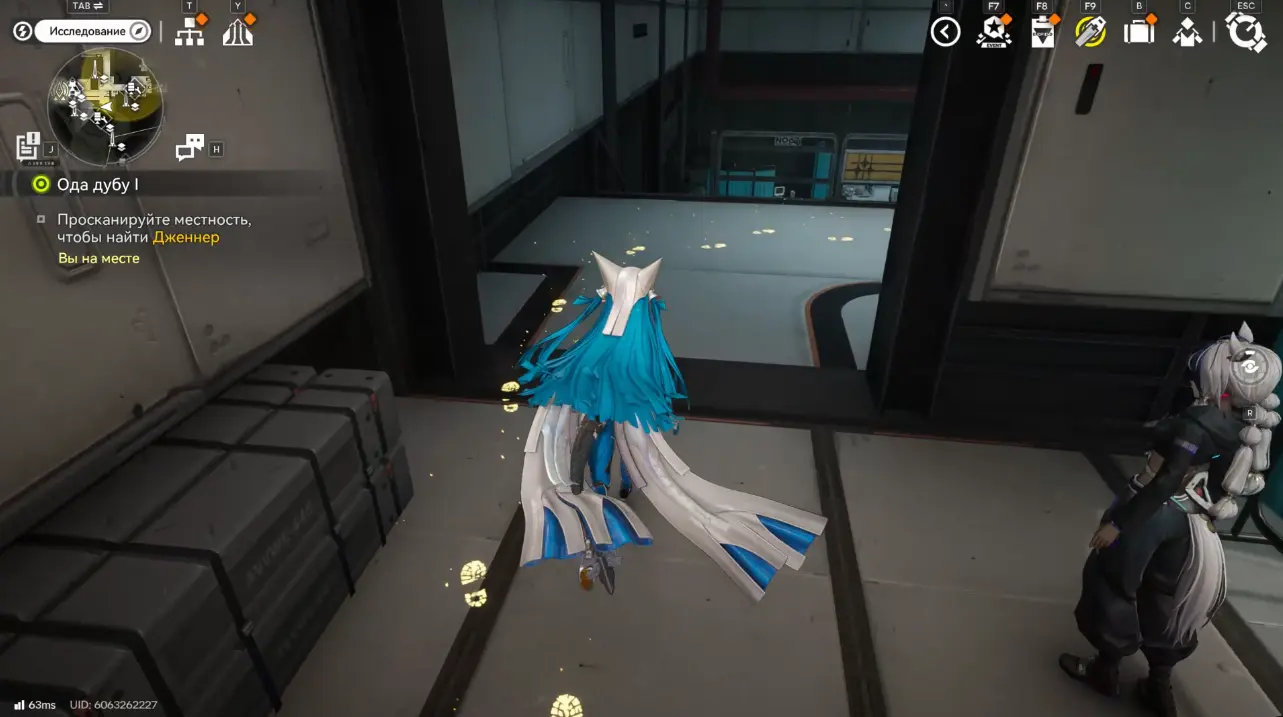Активируйте сканирование и внимательно следите за желтыми следами на земле. Они приведут вас в столовую.