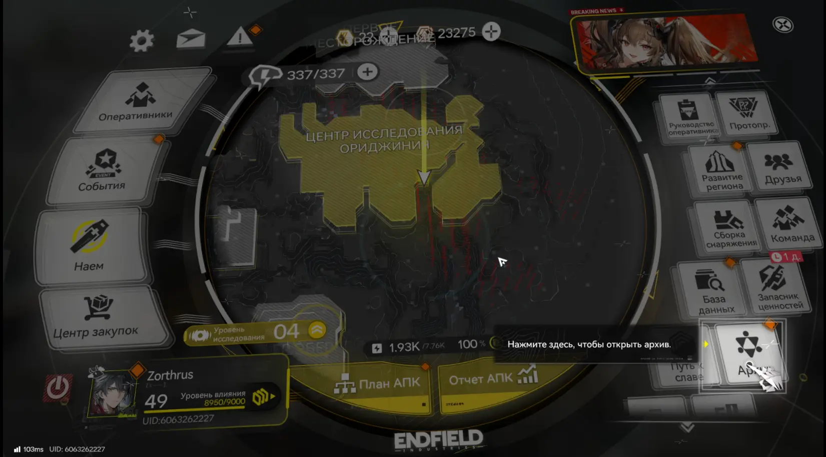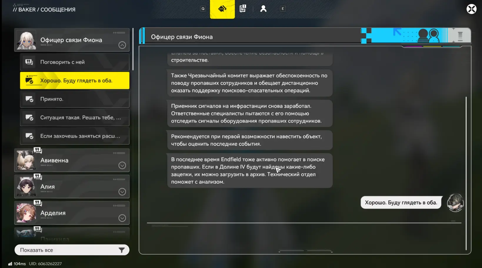 Откройте и прочитайте сообщения от Фионы. Из переписки становится известно, что Endfield помогает искать пропавший персонал, и вы решаете подключиться к расследованию.