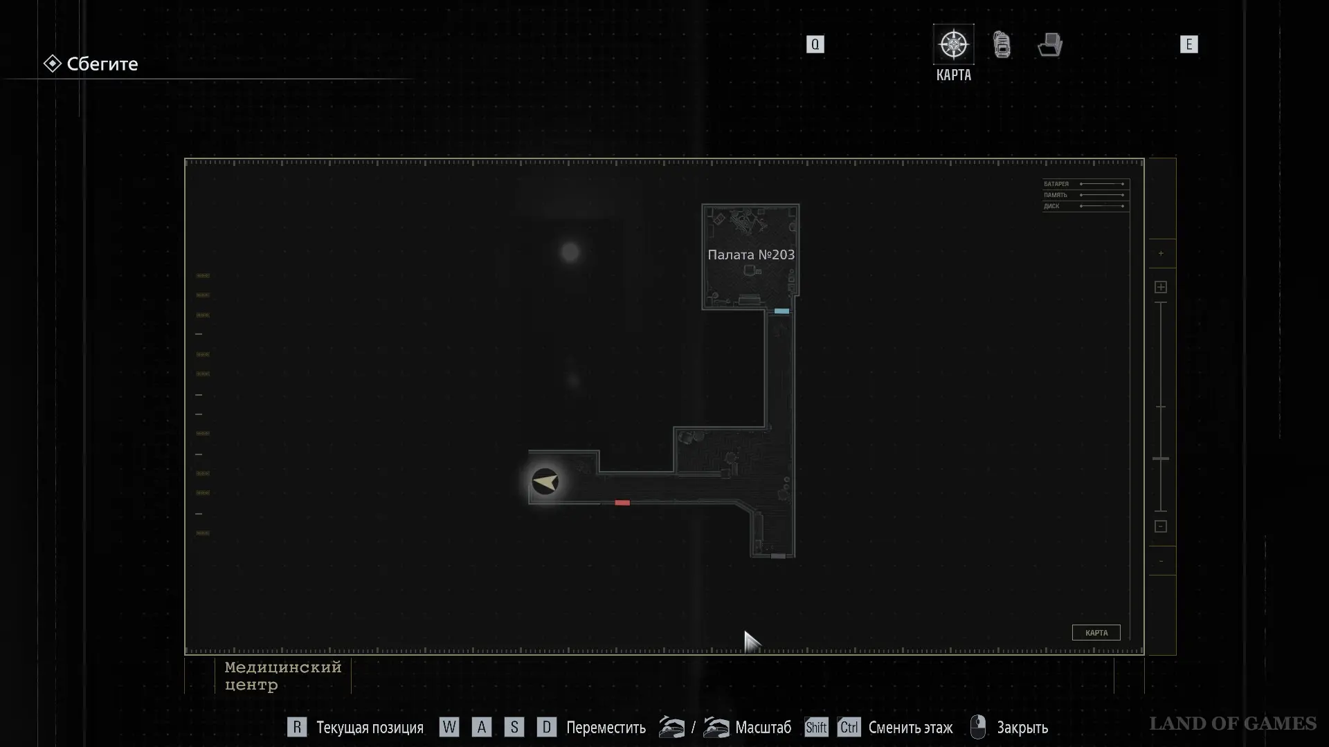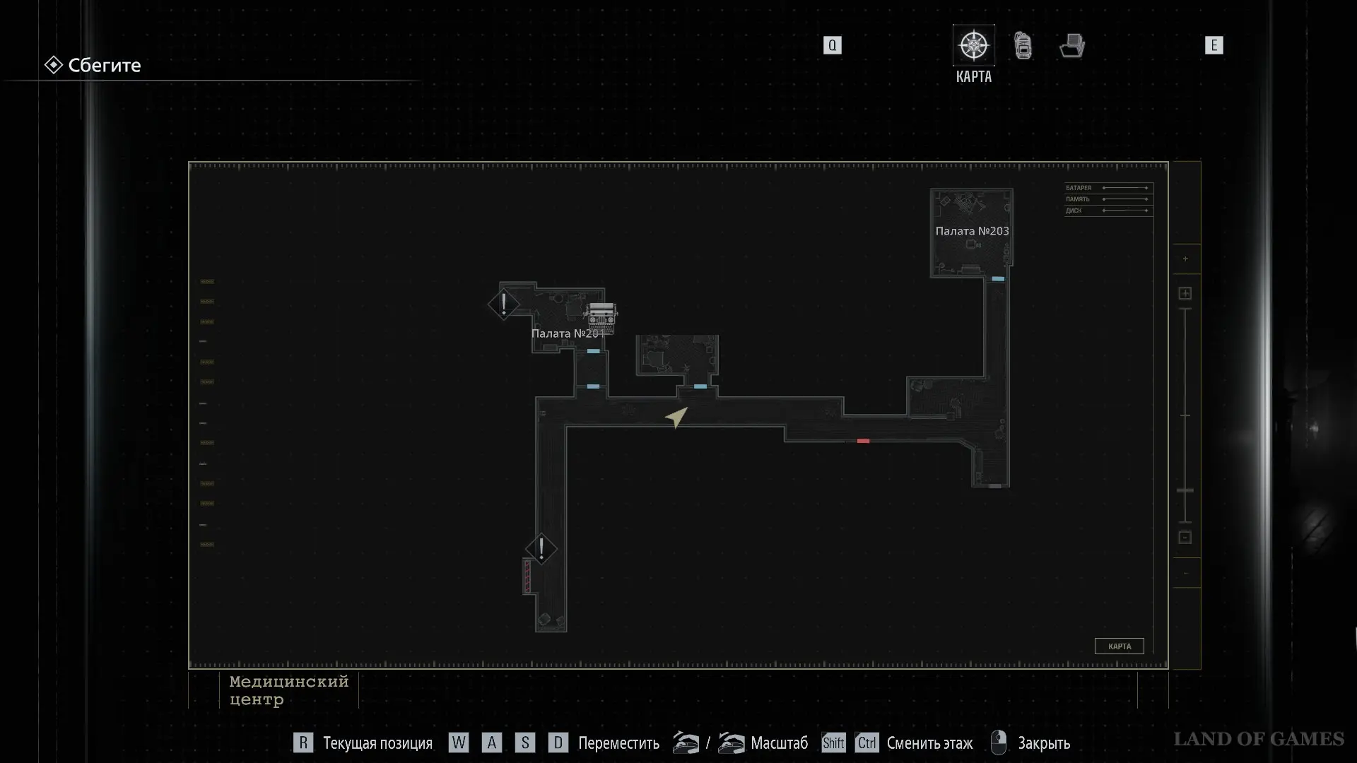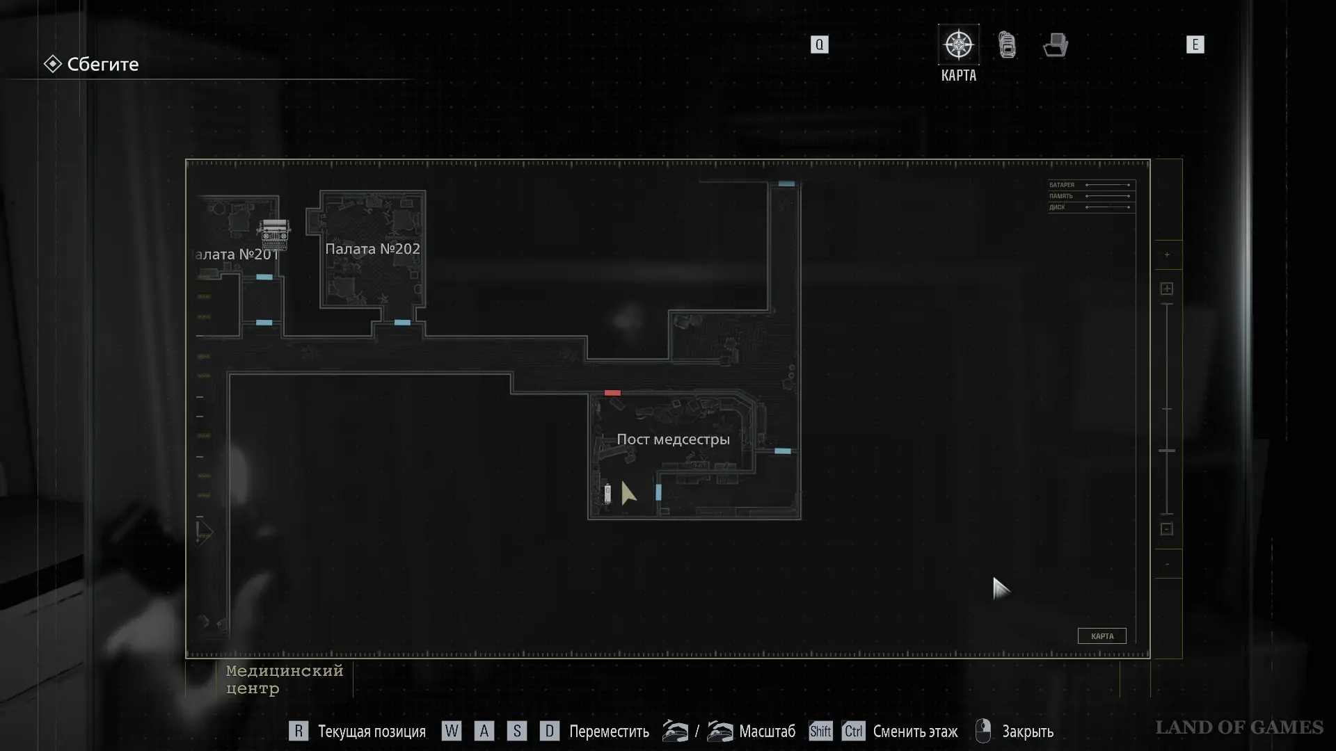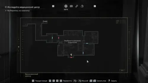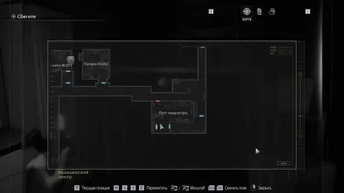 Покиньте помещение и вернитесь в коридор. Оттуда следуйте к Посту медсестры — он расположен в юго‑западной части карты.