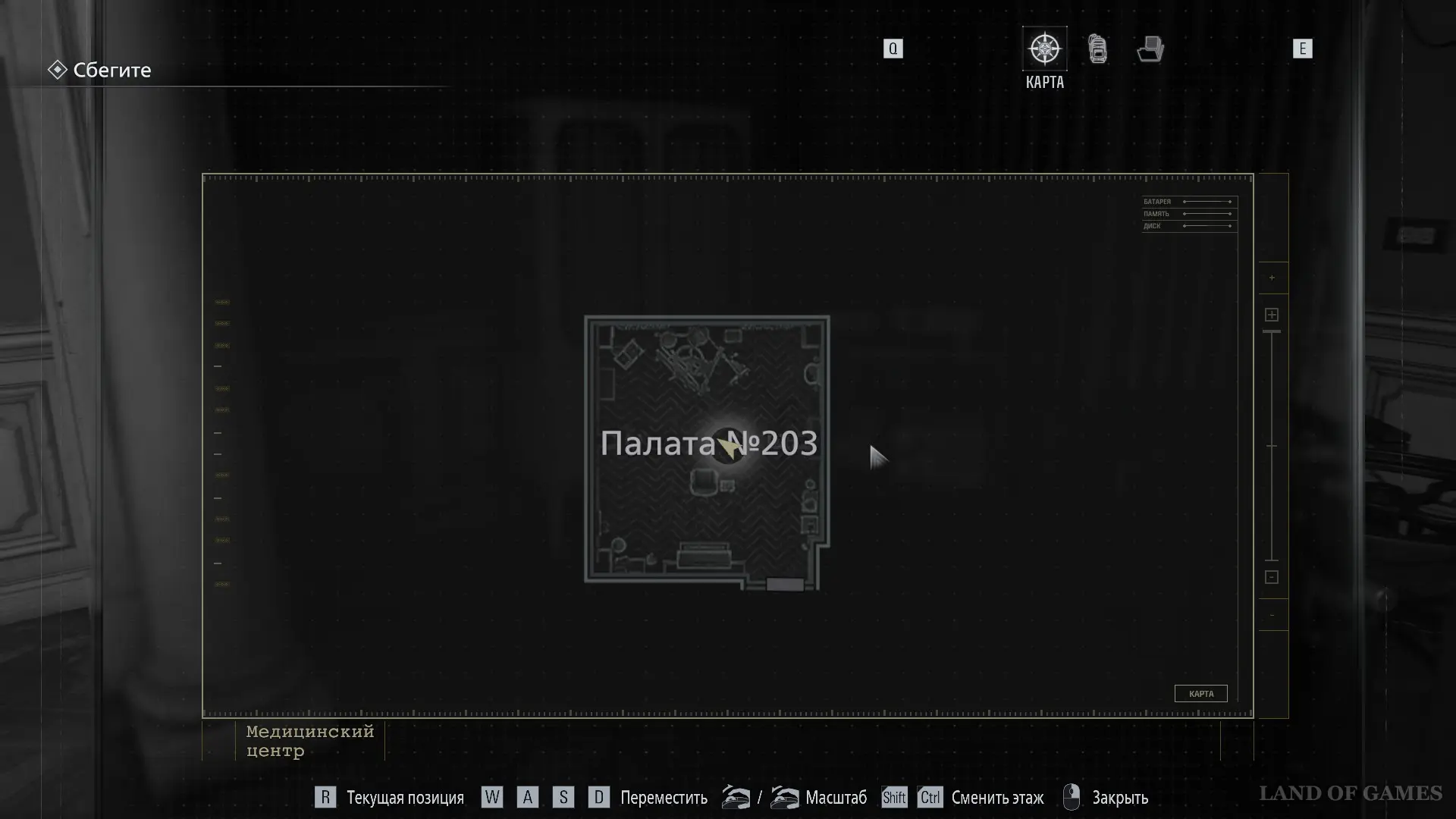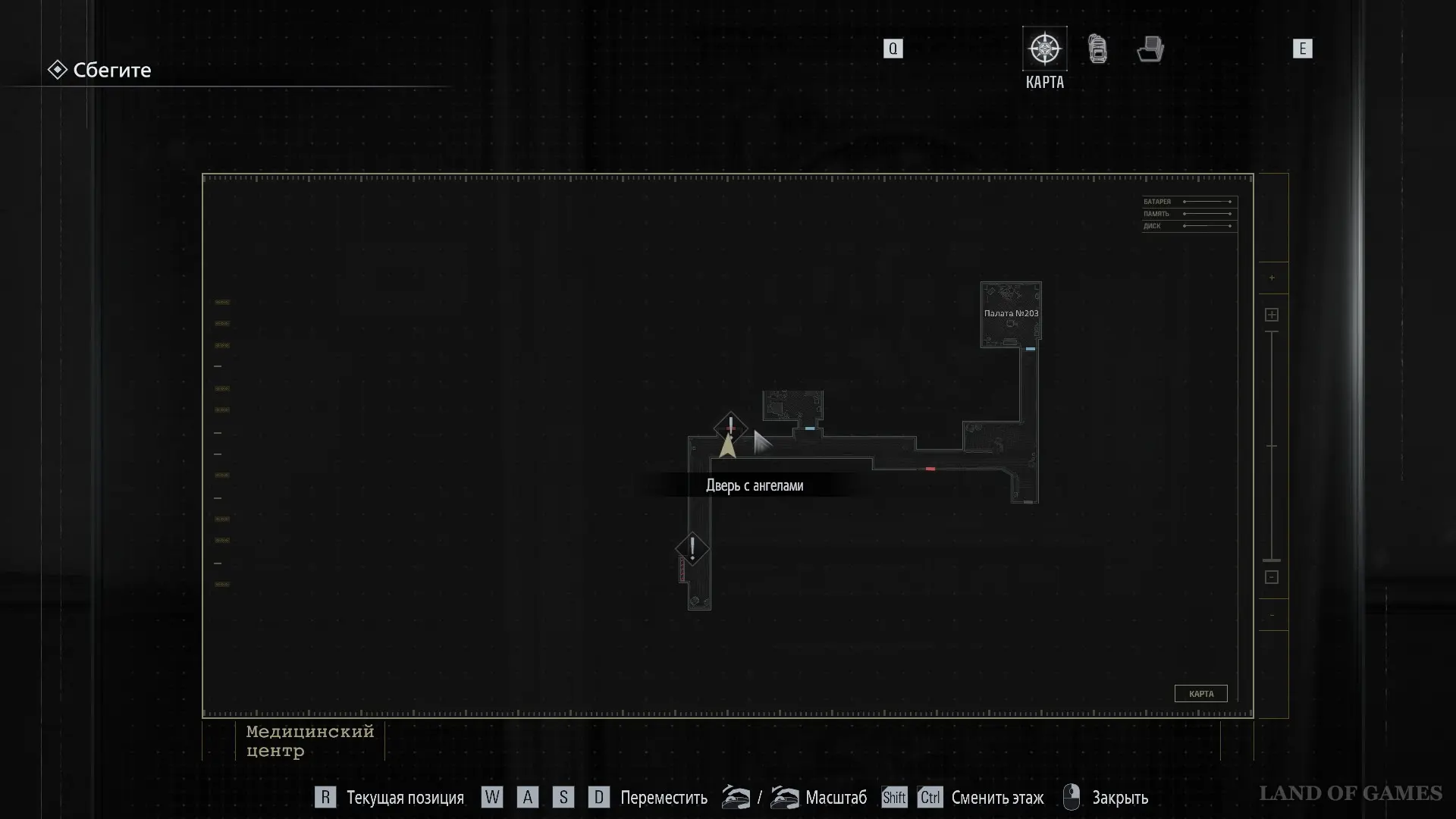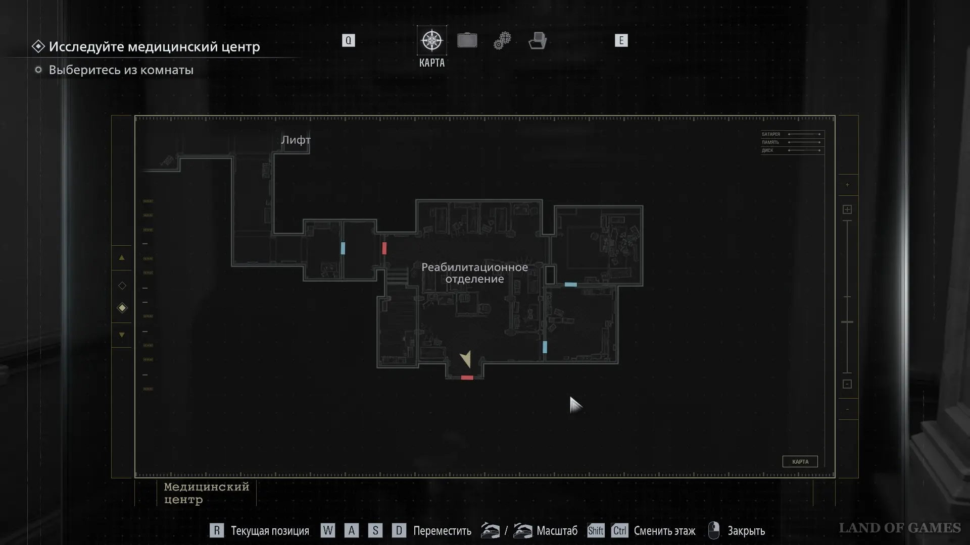 Покиньте помещение и вернитесь в коридор. Оттуда следуйте к Посту медсестры — он расположен в юго‑западной части карты.