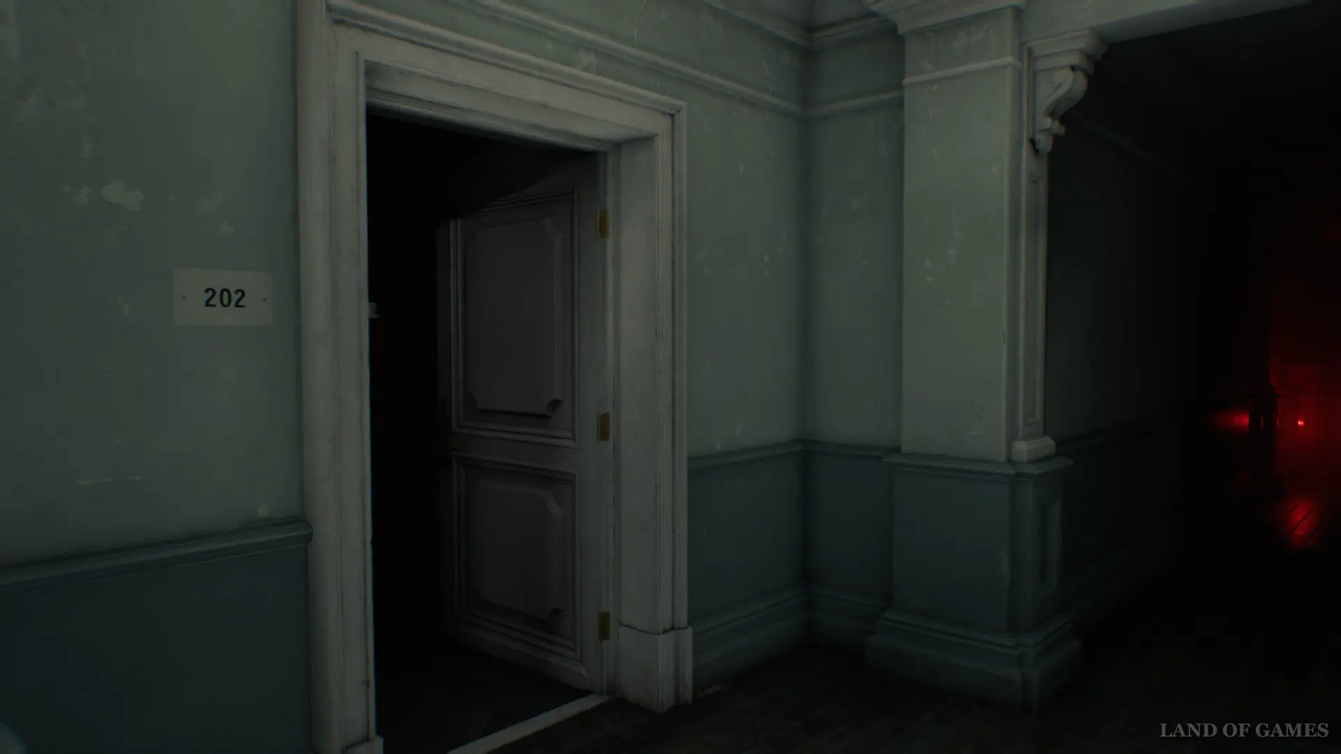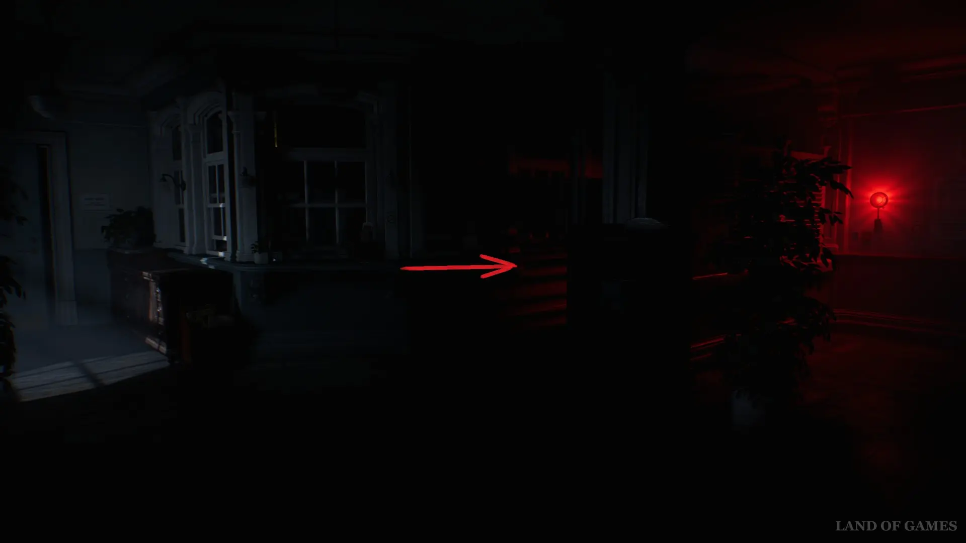 Выйдите из палаты и следуйте вперед по коридору, ориентируясь на красный свет. Щелкните переключатель, чтобы включить свет в темной части больничного крыла.