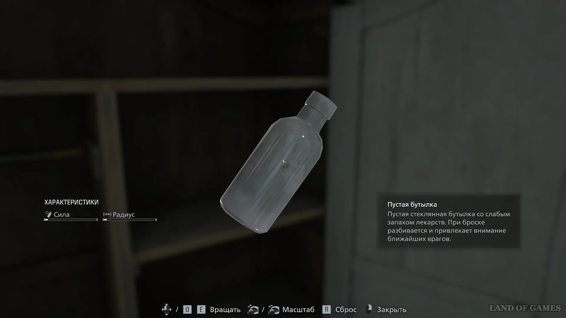 В этом же кабинете пройдите в соседнюю комнату и заберите с полки Пустую бутылку, с помощью которой вы сможете отвлекать внимание врагов и в будущем получить одну из редких ачивок.