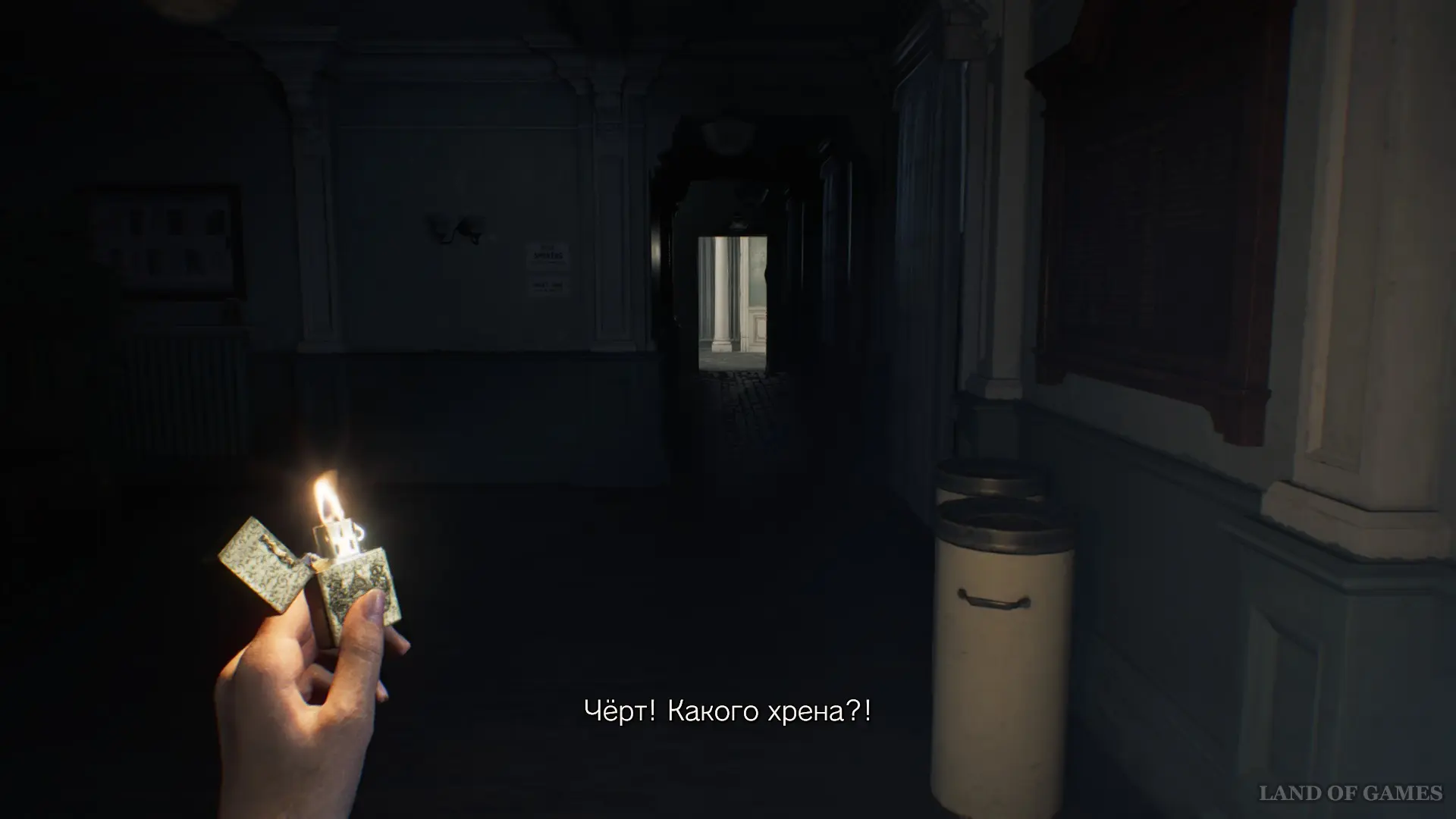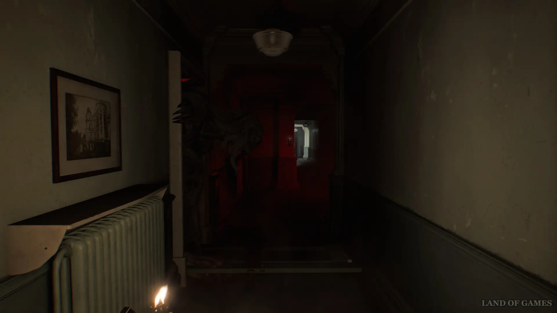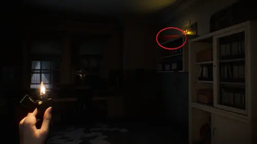После короткой кат-сцены на Посту медсестры вы первый раз столкнетесь с монстром. Единственный шанс спастись — воспользоваться советом из найденной ранее книжки и бежать к источнику света.