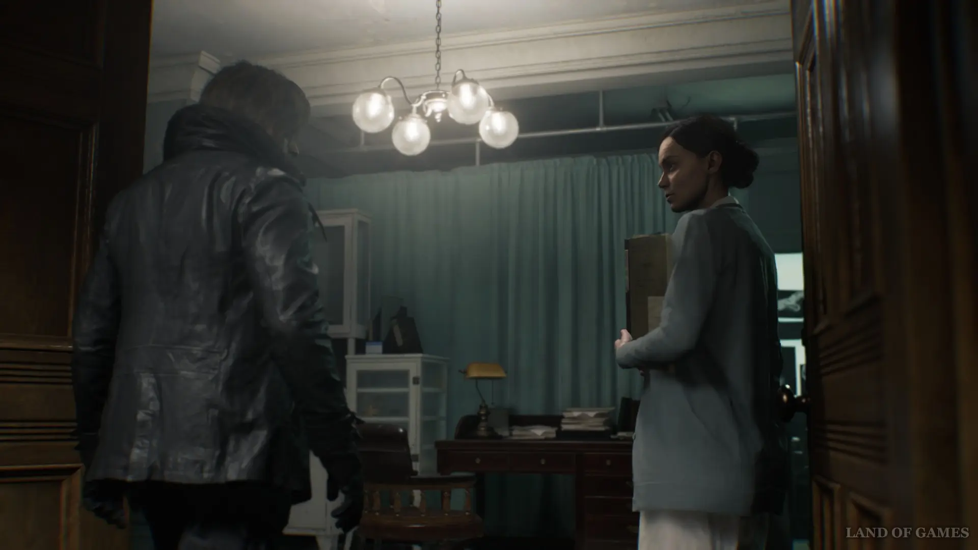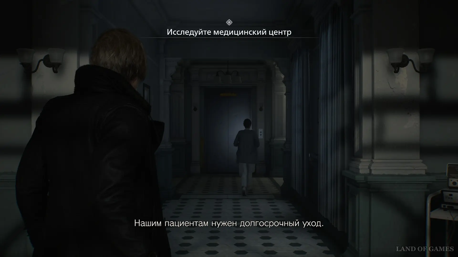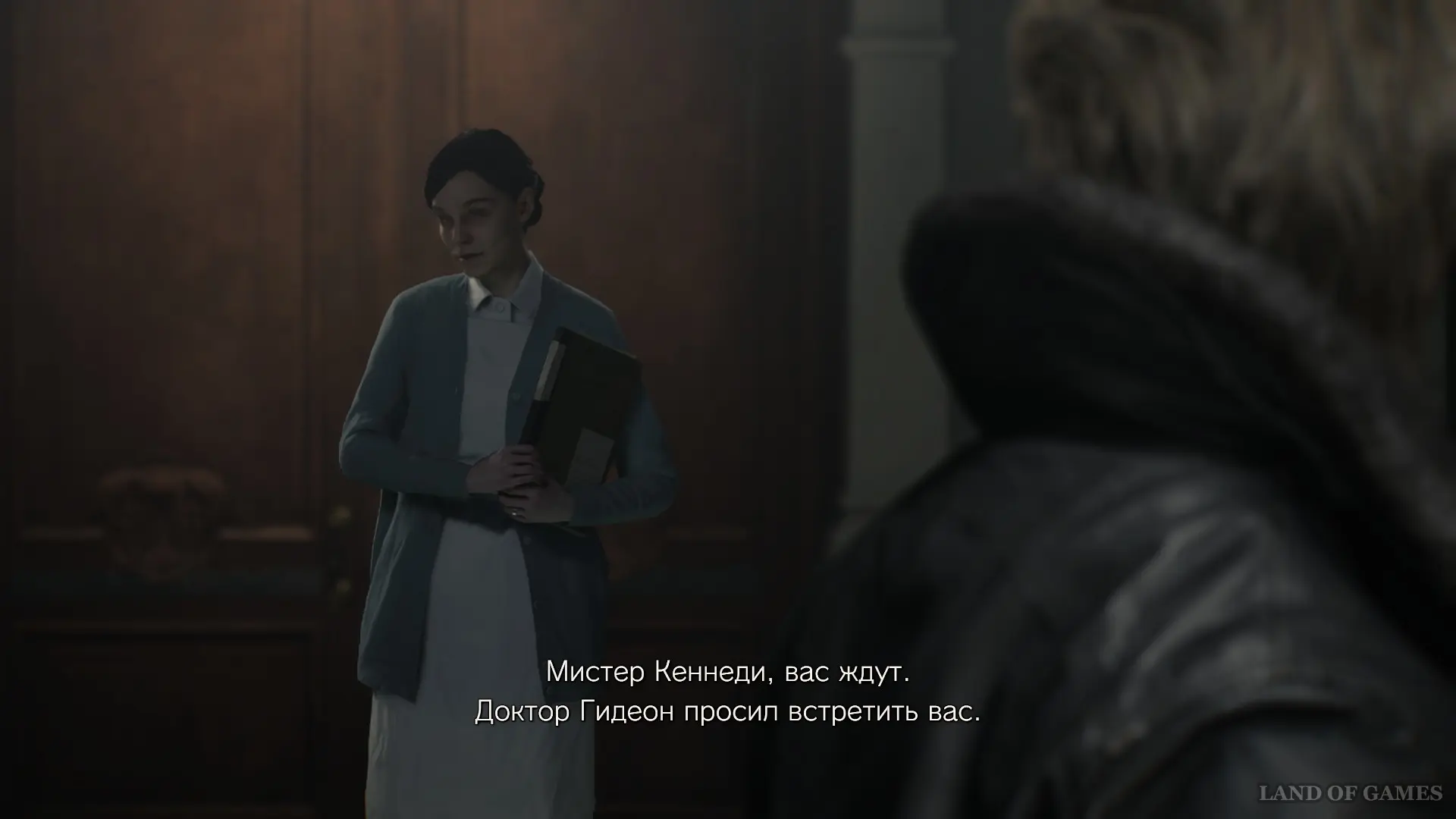Когда управление перейдет к Леону Кеннеди, следуйте за доктором, который предложит вам дождаться Гидеона.