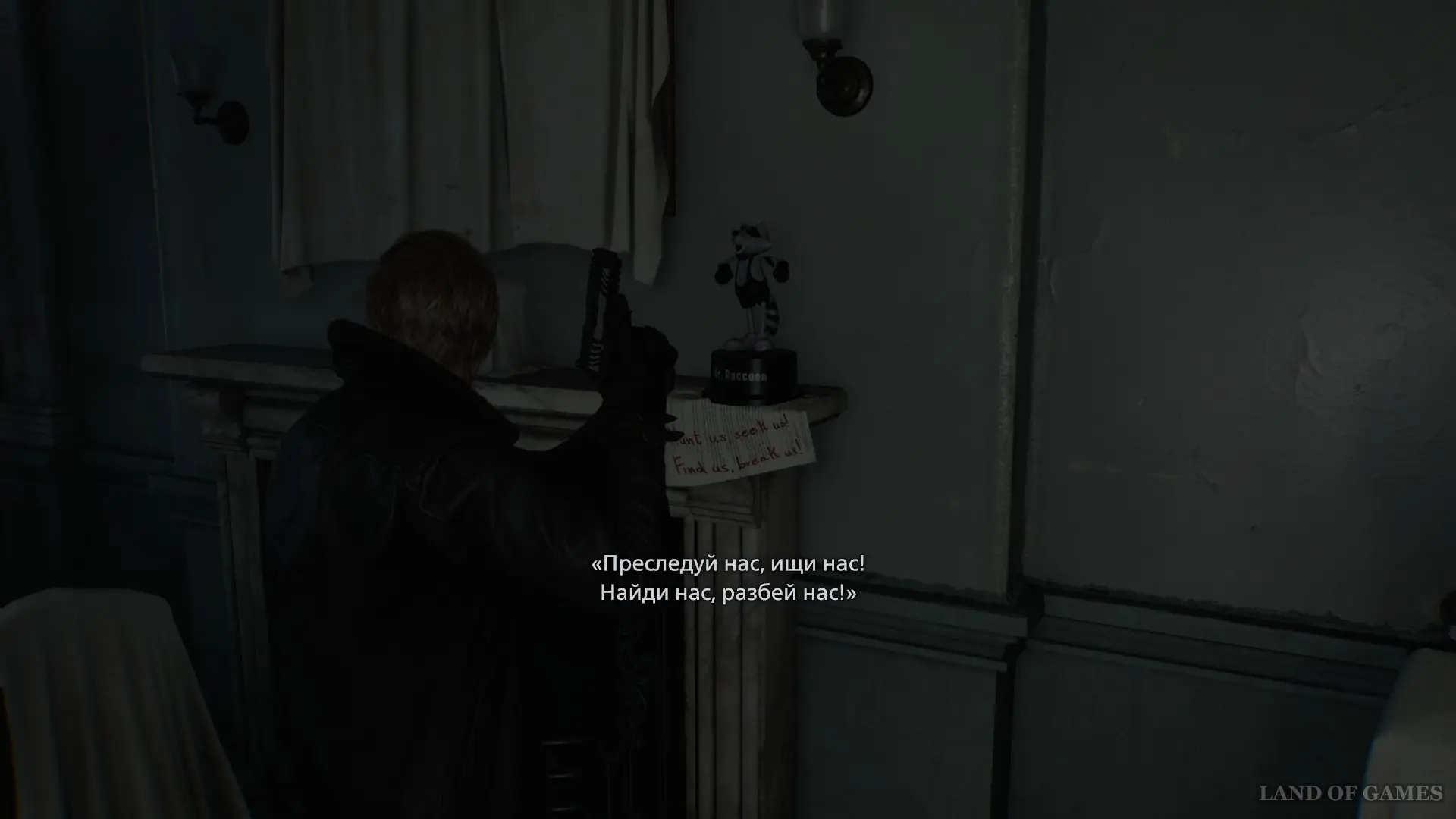 В следующем помещении вы наткнетесь на сувенирную фигурку Мистера Енота. Разбейте ее, чтобы получить достижение «Охота началась» и следуйте вперед.