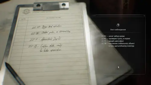 Придя в себя в палате номер 203, внимательно осмотрите помещение — на небольшом столике будет лежать Лист наблюдений.