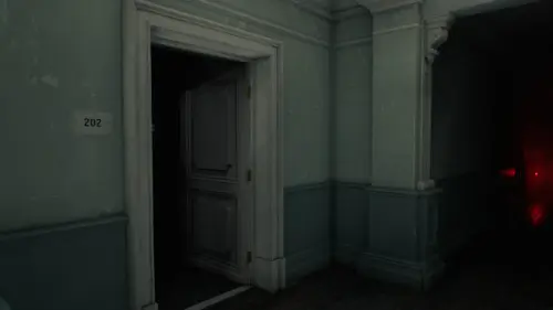 Отправляйтесь обратно в палату 203 — ту самую, где вы пришли в себя в самом начале. Оставайтесь внутри и ждите, пока монстр не скроется из виду.