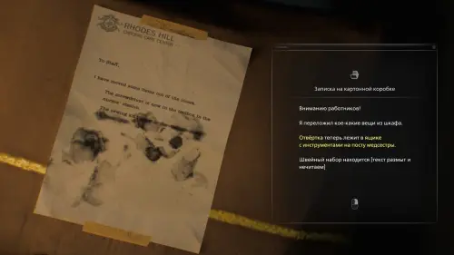 В дальней части комнаты взаимодействуйте со шкафом и прочитайте Записку на картонной коробке.