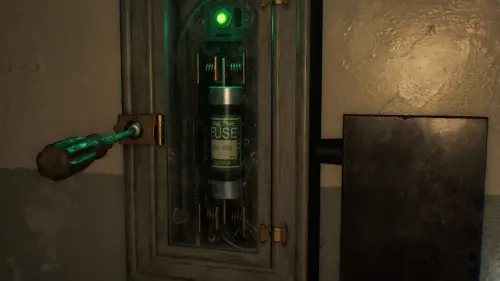Используйте найденный инструмент на электрическом щитке и хватайте рабочий предохранитель. Однако, будьте внимательны: после этого действия вы будете автоматически атакованы монстром.