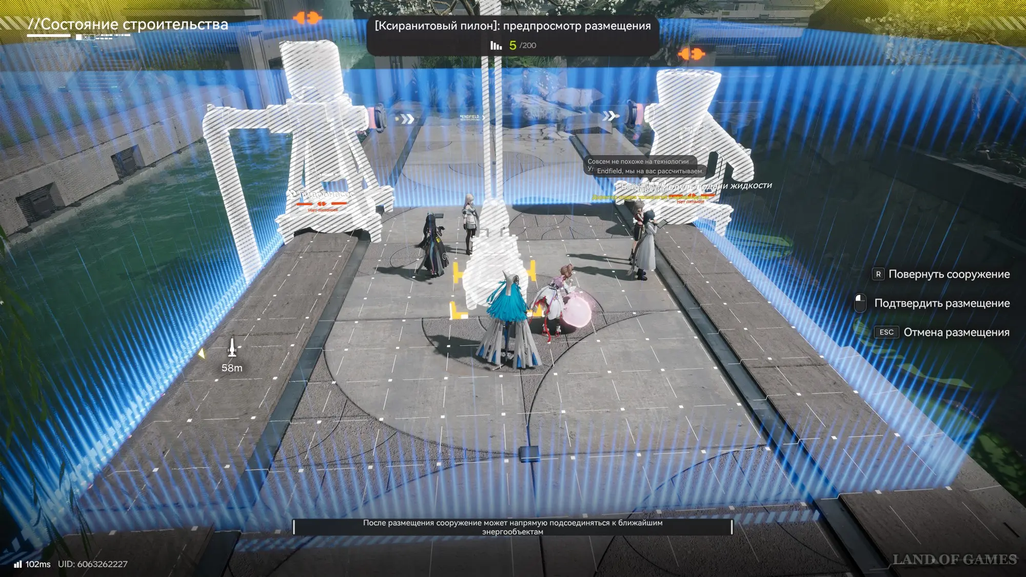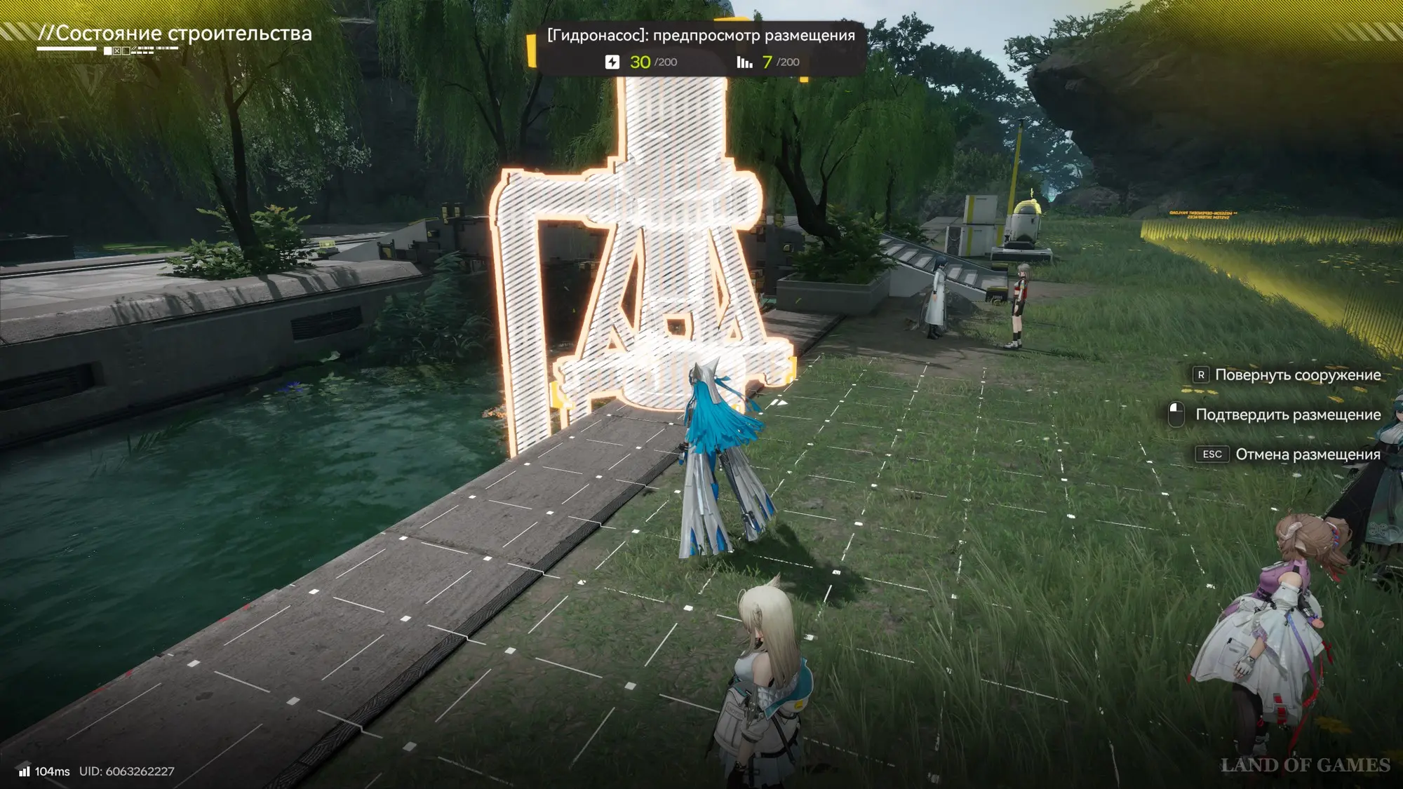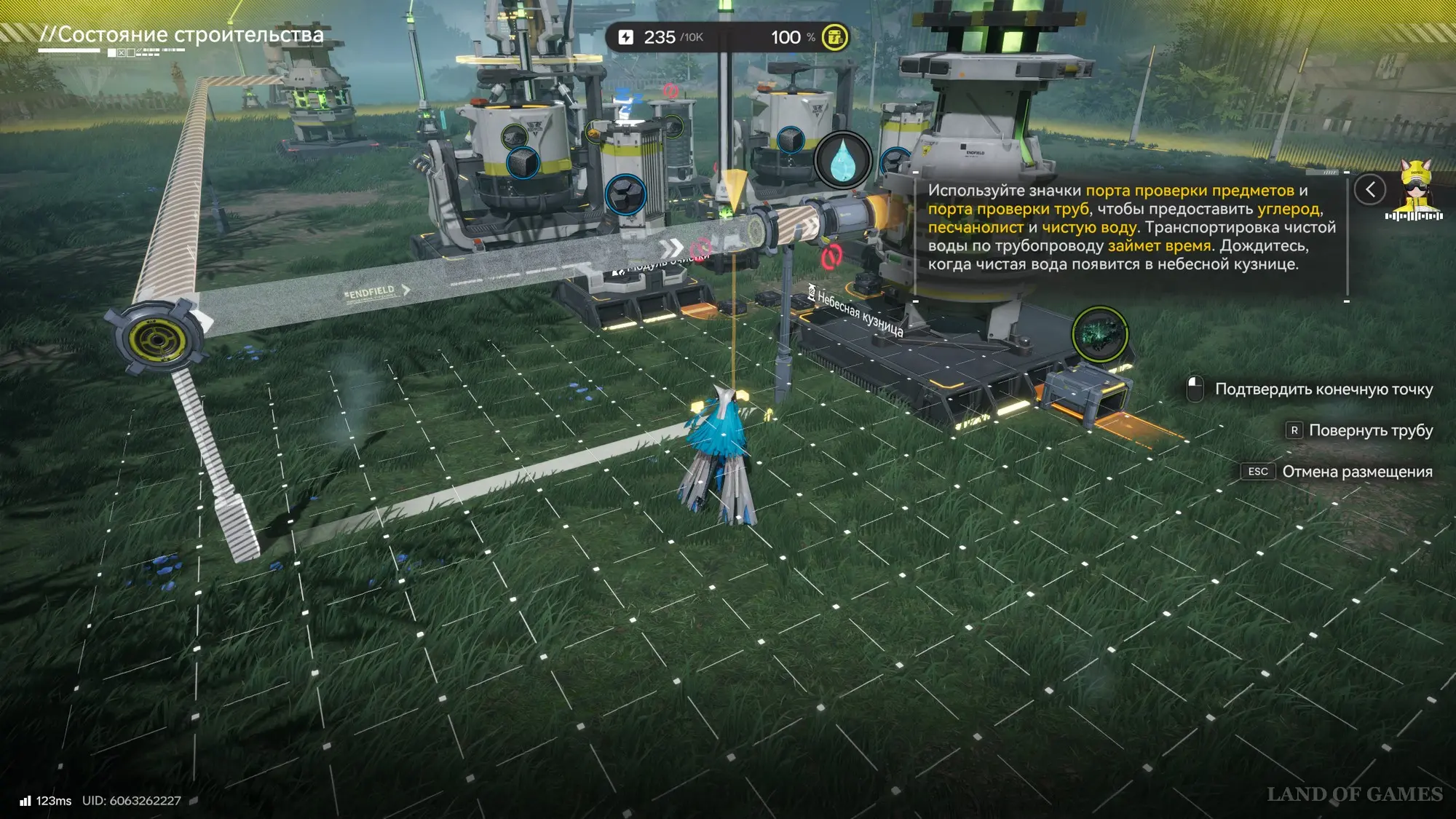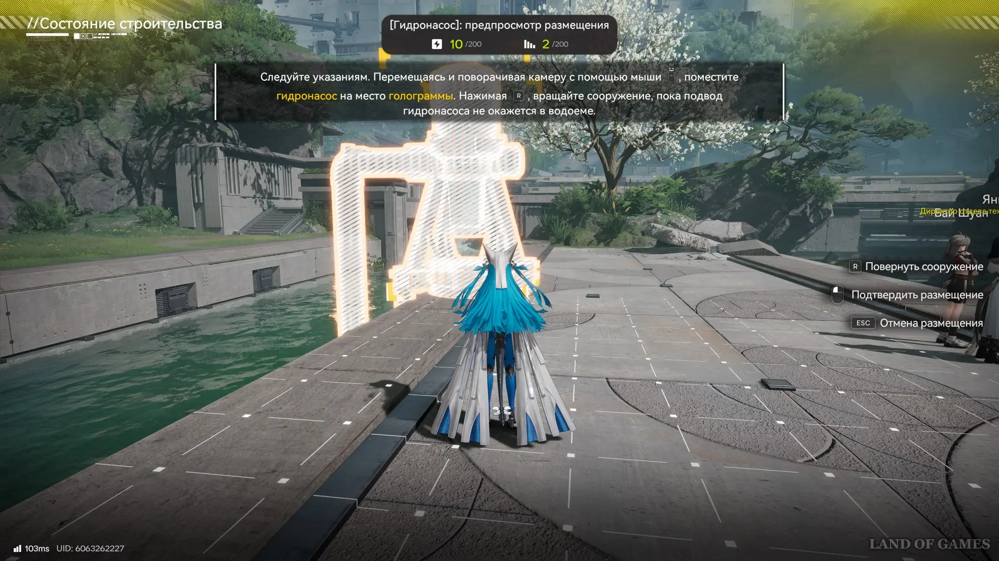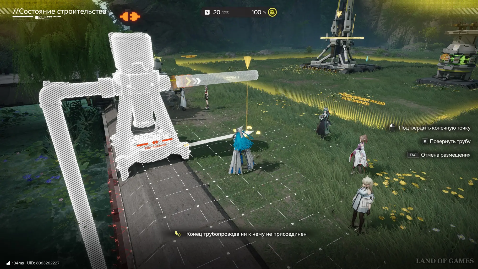Пройдите немного на север, нажмите клавишу «Tab» для перехода в режим строительства и установите в отмеченных местах гидронасос и модуль подачи жидкости, а потом соедините их трубой. Затем выберите ксиронитовый пилон и поместите его рядом с ранее установленными устройствами, чтобы запитать их энергией.