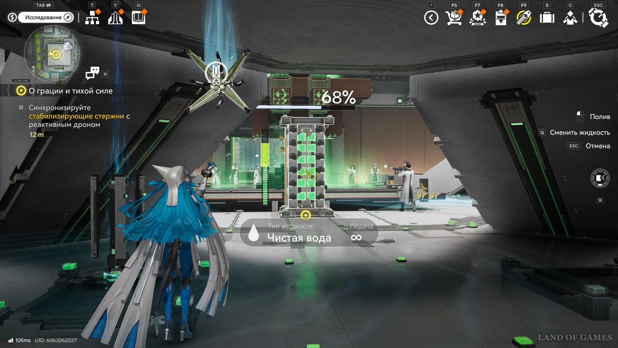 Направляйтесь в институт материаловедения, расположенный в городе, и подойдите к барьеру. Гляньте ролик и войдите в здание, а потом поболтайте с Чжуан. После разговора подойдите к узлу регулирования потока и с помощью него активируйте дрон. Затем наведите прицел на стабилизирующие стержни и начните поливать их водой.