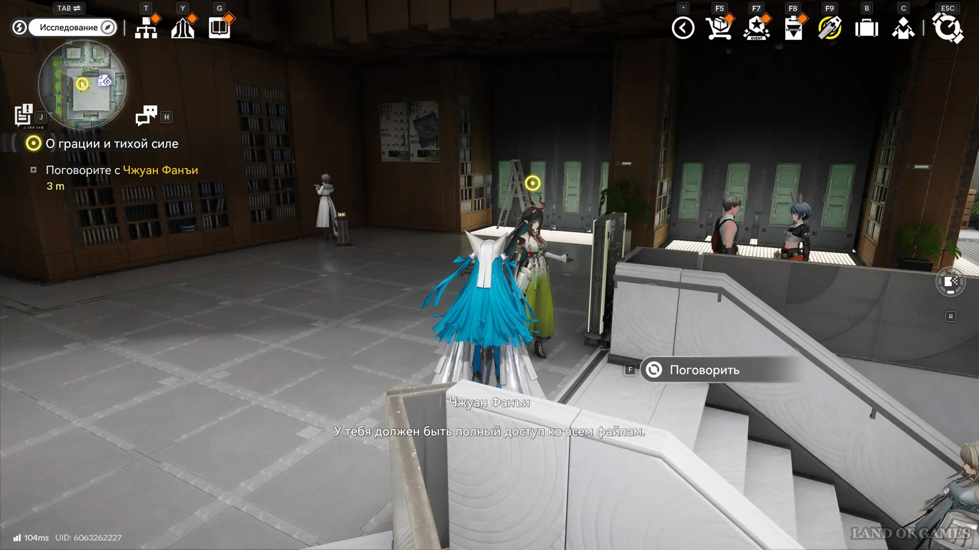 Для выполнения необязательной задачи следует побеседовать с Дядей Суном, Пу Юанем, Фан Мином, Гэ Ипу и Фу Бо (никаких дополнительных наград за это вы не получите). Поднявшись наверх, снова пообщайтесь с Координатором и Ми Фу. Войдите в Основной столб и посмотрите новый ролик. Затем можете опять поговорить с Ми Фу (просто доп. информация) или сразу пройти с кабинет.