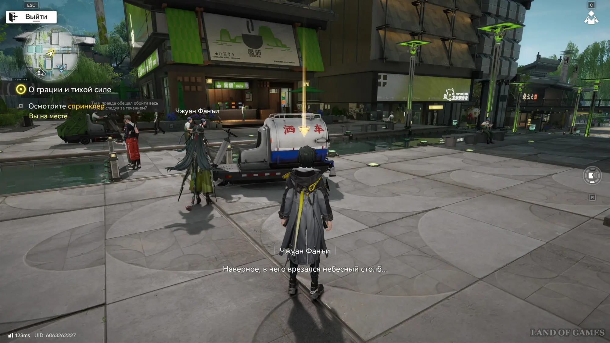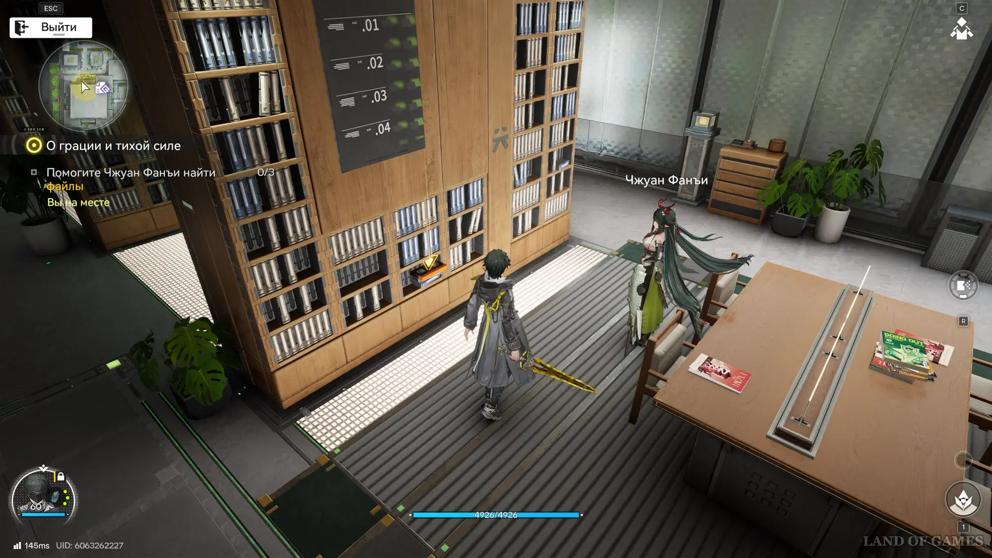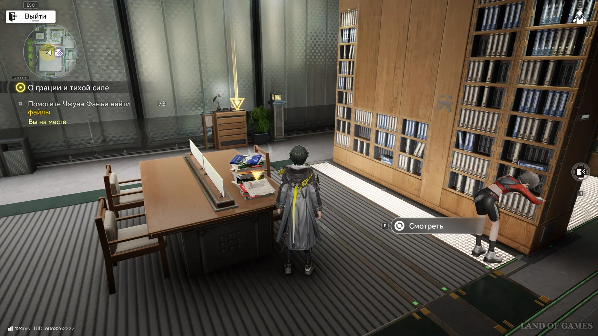 Познакомившись с Чжуан Фанъи, поговорите с ней о текущей ситуации в городе, следуя за девушкой и касаясь различных объектов в кабинете. В конце посмотрите на Улин с высоты здания, а потом поболтайте с Ми Фу и покиньте офис. На этом задание подойдет к концу.