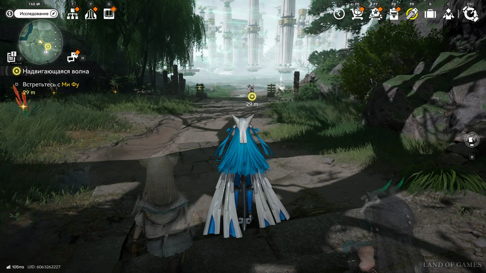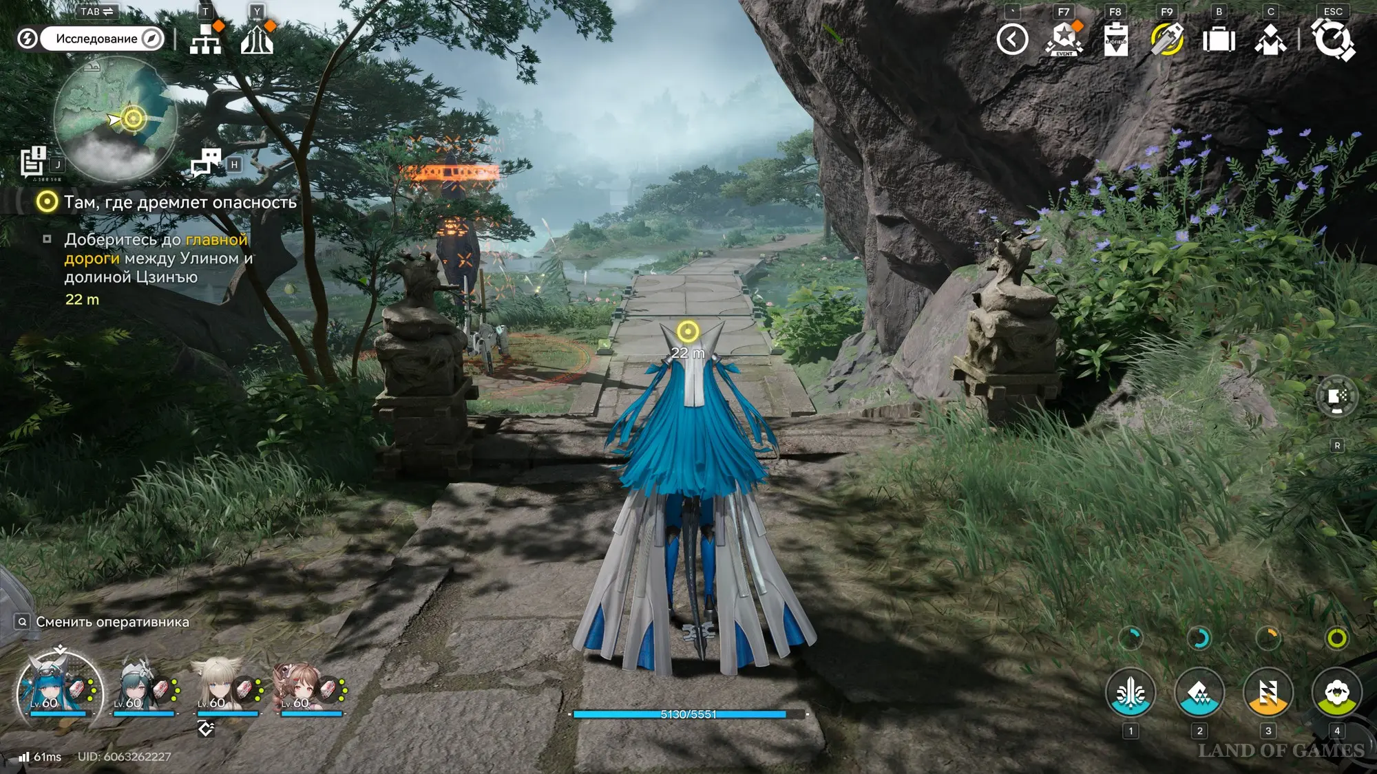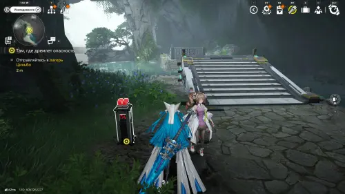 Доберитесь до главной дороги между Улином и долиной Цзинъю, куда указывает маркер. Дойдя до указателя, сверните влево и начните двигаться на восток к следующей точке, расположенной прямо рядом с телепортом. Продолжайте идти дальше, пока не дойдете до полуразрушенного моста в ущелье.