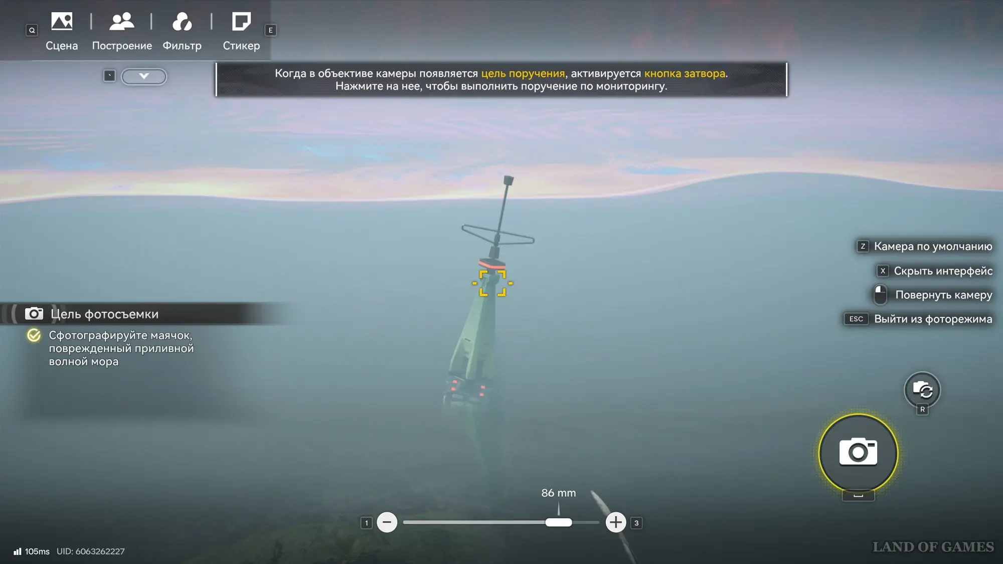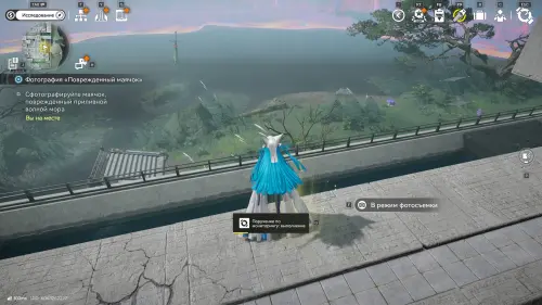 Пройдите к выделенной зоне и встаньте на указанной точке, а затем перейдите в режим фотосъемки и сделайте снимок поврежденного устройства, расположенного впереди. Можете при желании приблизить объектив. В результате вы завершите поручение.