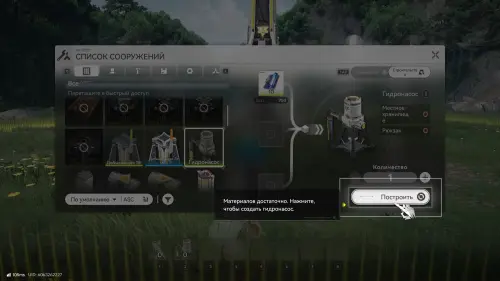 Услышав крик Бай Шуан, бегите к девушкам и узнайте, что здесь случилось. Вам нужно будет создать гидронасос и модуль подачи жидкости для исправления ситуации. Просто следуйте инструкции на экране. Если у вас нет ферриевых деталей, то посмотрите в нашем гайде по чертежам, как их изготовить.